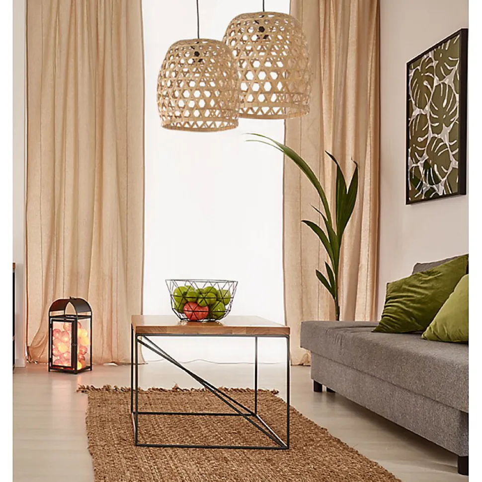 Ultra tendance, on craque pour ce luminaire qui diffuse une lumière douce et chaleureuse. De la cuisine au salon en passant par les chambres, elle s’harmonise avec tous les styles d’intérieur.On aime la structure aérienne et légère en bambou qui nous invite au voyage. Une suspension de charme pour un intérieur cosy et authentique. Créez votre propre atmosphère lumineuse, essentielle à une déco réussie. Astuce déco : l’accumulation de lampes de même type (fibres naturelles) et de différentes tailles ou formes pour un intérieur ultra tendance ! Caractéristiques : Caractéristiques Suspension LUZ Fabrication artisanale STRUCTURE : bambou ECLAIRAGE : culot de type E27 x1 x 40W – Ampoule non fournie LONGUEUR APPROXIMATIVE DU CORDON : environ 150 cm DIMENSIONS GENERALES APPROXIMATIVES : diamètre 50 cm x hauteur 45 cm FABRICATION : Qualité artisanale. Les imperfections apparentes font de chaque modèle, une pièce unique et authentique. Conformité CE