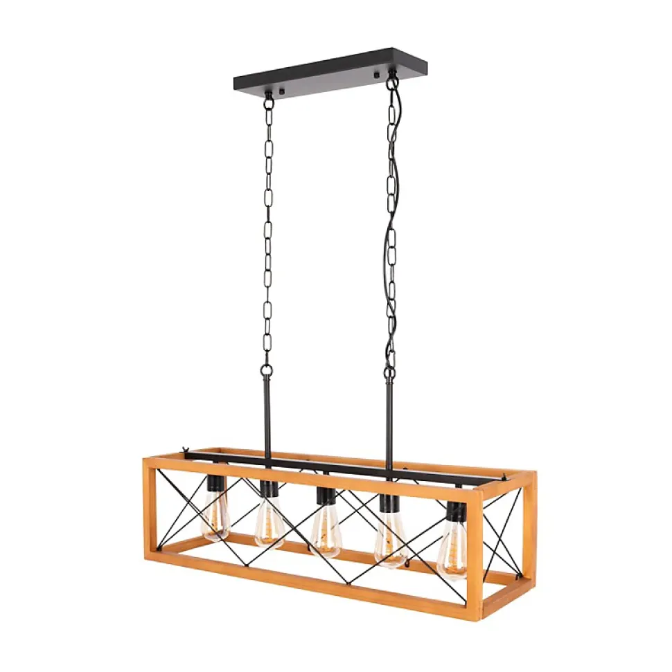 La suspension PANDORA est un symbole de style vintage et d’authenticité. Fabriqué avec des matériaux de haute qualité, y compris du bois et du métal, ce luminaire allie la nostalgie du passé à l’élégance du présent. Son design unique et la fusion harmonieuse du bois et du métal créent un équilibre parfait entre le vintage et l’industriel, ajoutant du charme à n’importe quel environnement. Les chaînes métalliques réglables offrent non seulement un support robuste, mais permettent également d’ajuster la hauteur de la lampe selon vos préférences. Avec cinq douilles E27, vous avez la liberté de choisir parmi une large gamme d’ampoules pour créer l’atmosphère parfaite. Que ce soit dans une salle à manger, une cuisine ou un espace de travail, la suspension PANDORA illuminera vos moments avec style et distinction.
