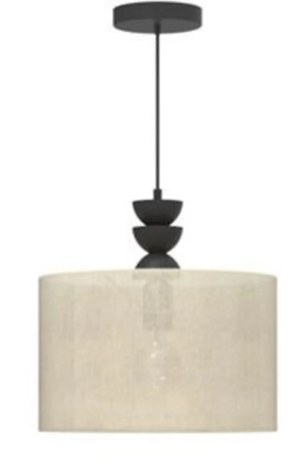 Suspension en céramique et lin E27 40W noir et beige Ø30cm Seynave, Kamil