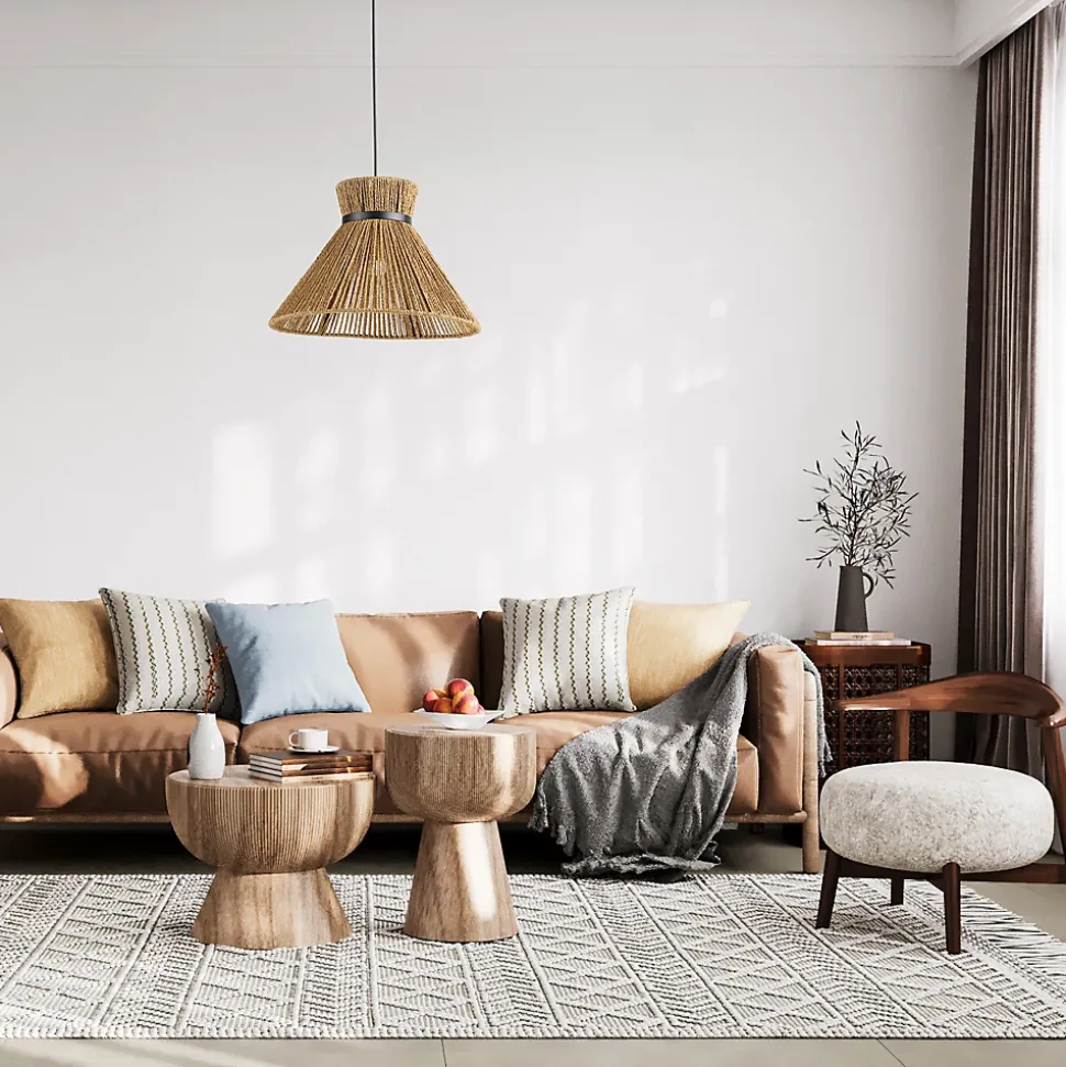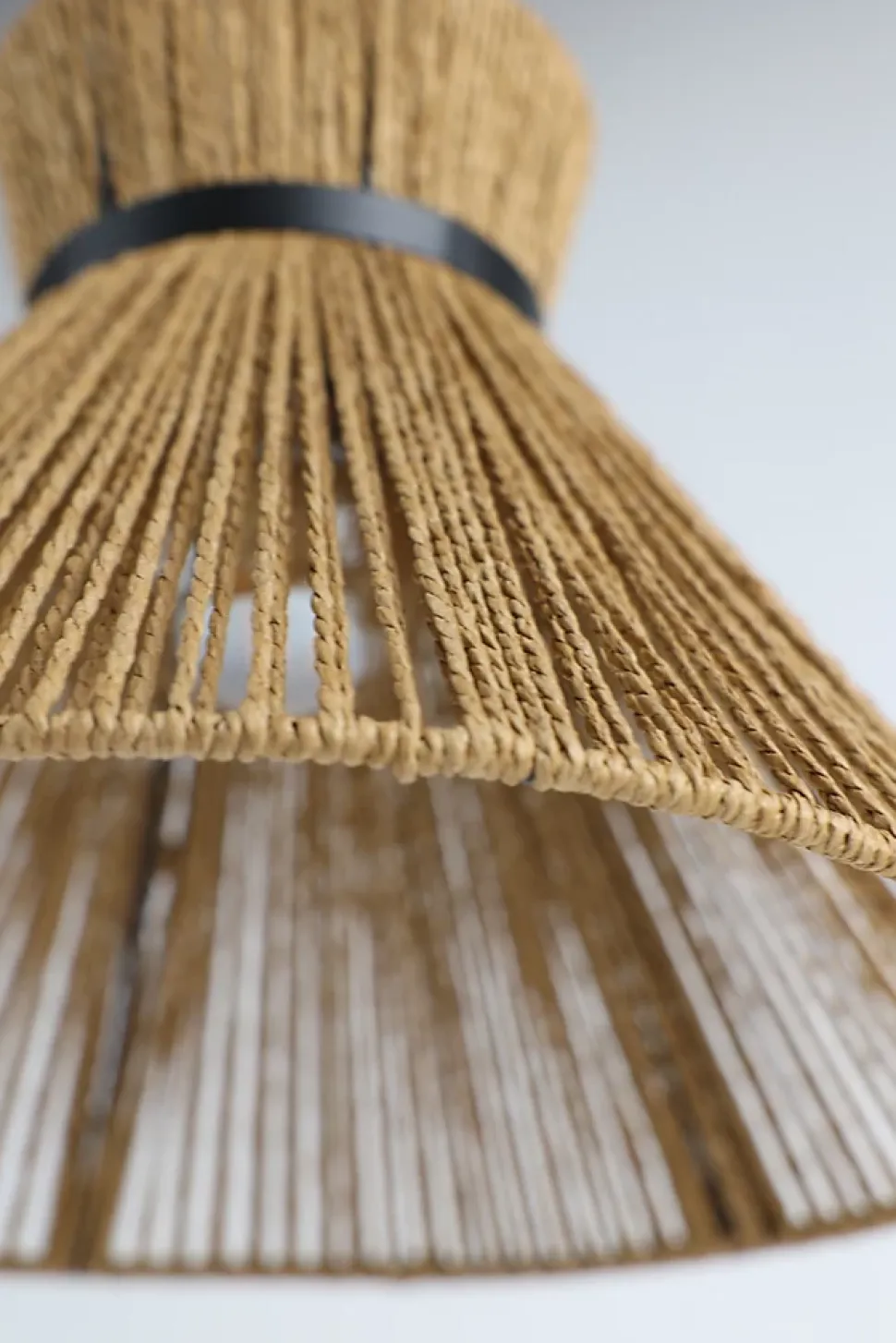 - Le cerclage en métal noir ajoute une touche contemporaine, équilibrant parfaitement l’aspect organique de la corde papier avec une finition moderne et raffinée.
