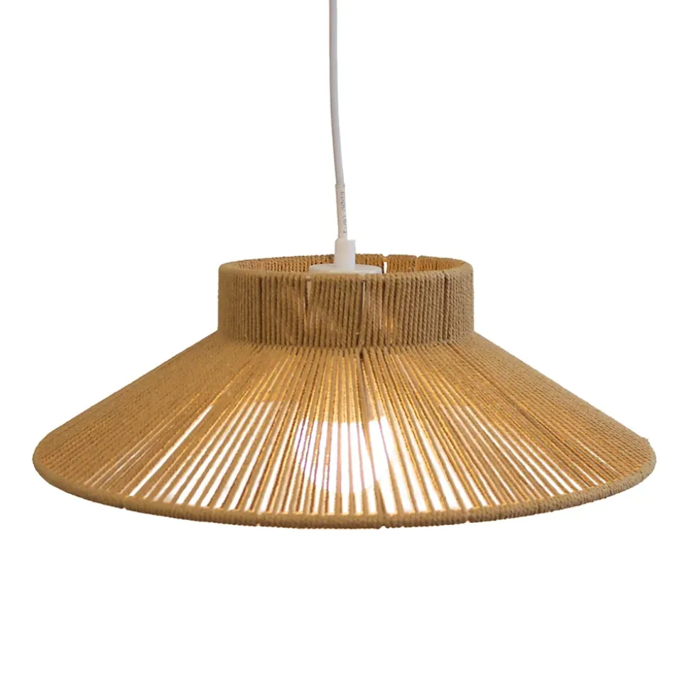 - Son large abat-jour en fibres naturelles diffuse une lumière douce et homogène, idéale pour illuminer une salle à manger, un salon ou une cuisine.