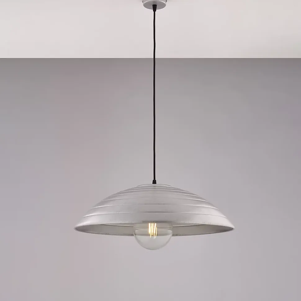 Lampe à suspension diamètre 50 en fer laqué noir décor argent vieilli avec câble électrique recouvert de tissu orientable 1 lumière – H.15 – MAX 115 – Ø50 Mesures du produit : H
