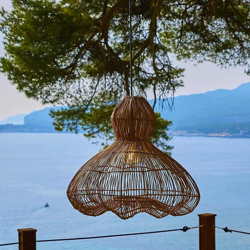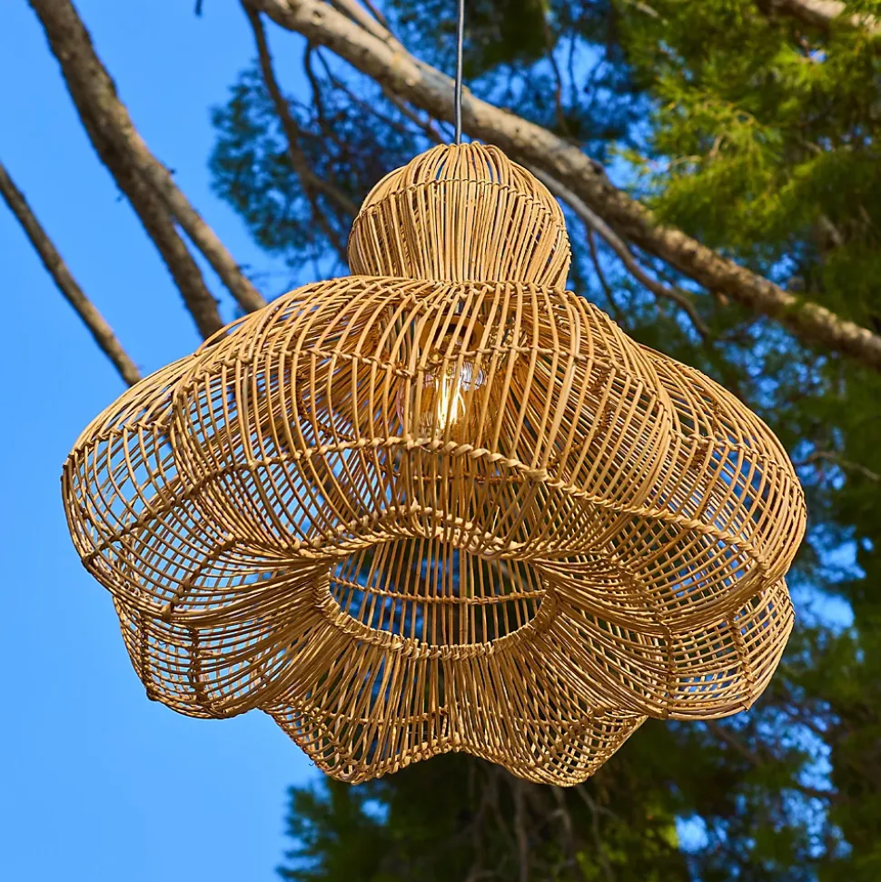 La suspension artisanale Ronda Outdoor Cable est fabriquée au Vietnam en rotin naturel tressé à la main. Ce luminaire au look ethnique chic apporte une touche chaleureuse à votre extérieur avec des dimensions de 60 cm de diamètre pour 53 cm de hauteur. Elle est équipée d’un câble extérieur de 5 mètres certifié IP64 pour résister aux projections d’eau, avec raccordement sur secteur 220-240V. Son design naturel structure vos volumes sous une pergola ou une véranda avec une élégance bohème. Fournie avec une douille E27 (ampoule max 25W non incluse), elle vous laisse libre de personnaliser votre source lumineuse. Pour préserver l’aspect du rotin et assurer sa longévité maximale, il est recommandé de l’installer dans un endroit sec et abrité. Profitez d’un éclairage décoratif robuste et tendance.