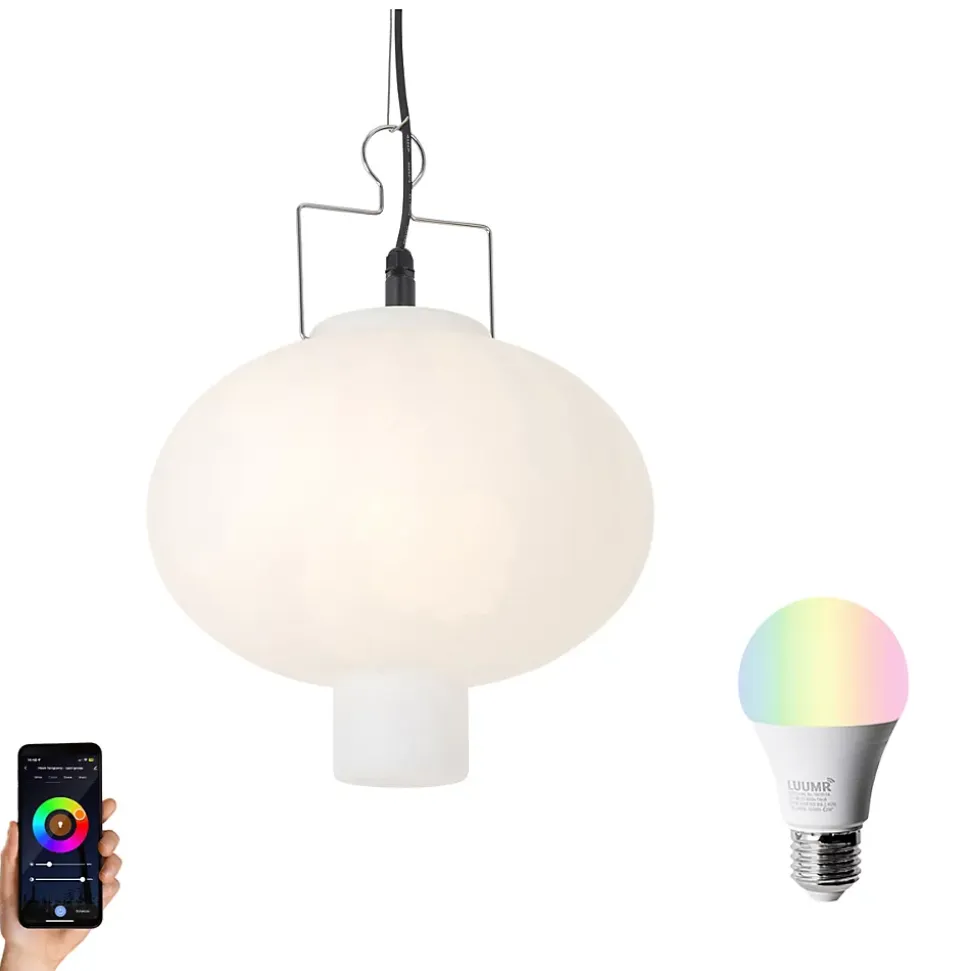 Combinez ambiance et technologie intelligente avec la suspension extérieure intelligente Pion. Avec son élégant abat-jour en verre blanc et sa forme moderne, cette lampe ajoute une touche stylée et accueillante à votre terrasse, balcon ou auvent. La lampe a un diamètre de 35 cm et est parfaite comme élément accrocheur dans n’importe quel espace extérieur.Grâce à l’ampoule LED intelligente Wifi A60 incluse, vous avez un contrôle total sur votre éclairage. Choisissez facilement parmi une large gamme de couleurs ou réglez la luminosité via votre smartphone ou le contrôle vocal. Créez une lueur chaleureuse pour une soirée relaxante ou une ambiance festive avec un éclairage coloré – tout est possible en quelques clics dans l’application. De plus, la lampe est résistante aux intempéries et conçue pour une utilisation extérieure à long terme.Optez pour une fonctionnalité intelligente et un design intemporel avec la lampe extérieure intelligente Pion. Téléchargez l’application LUUMR ici et découvrez la simplicité et la polyvalence de l’éclairage intelligent. Commandez dès maintenant et donnez à votre espace extérieur une mise à niveau moderne !