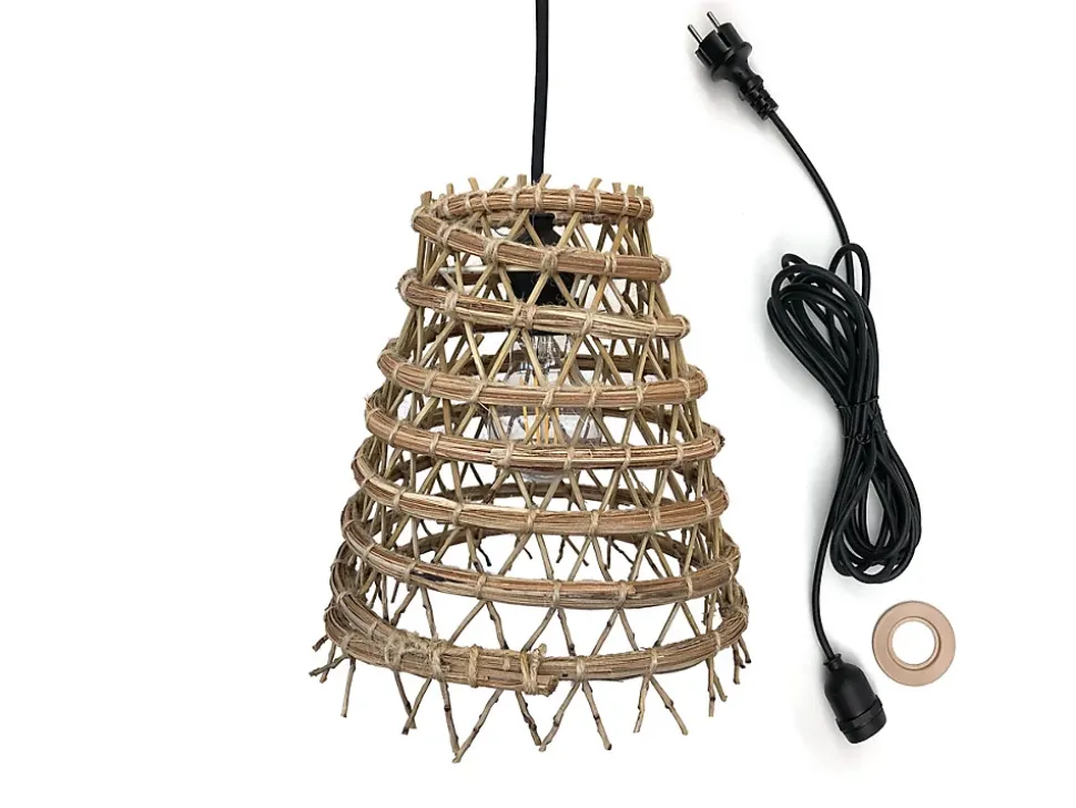 Adoptez une déco extérieure bohème ethnique chic !La suspension Zakari Cable est le luminaire extérieur pour une déco à la fois lumineuse et tendance. Son abat-jour est fabriqué en fibre de palmier dattier à la main et de façon artisanale faisant de chaque pièce, une pièce unique. Dotée d’un câble de 5 m de long, cette suspension pourra facilement s’accrocher au-dessus de votre pergola ou de votre tonnelle pour éclairer votre lieu de détente ou votre table à manger extérieure.Elle est livrée sans ampoule pour vous permettre d’installer l’ampoule E27 de votre choix d’une puissance maximale de 40 W.Dans le temps, cette suspension en fibre naturelle prendra sa teinte définitive pour égayer votre décoration de jardin. Grâce à sa protection IP64, la suspension Zakari Cable offre une imperméabilité totale pour une utilisation extérieure.Dimensions (Ø x H) : 22 x 22 x 24 cmAlimentation : sur prise secteur 220-240VAmpoule (non inclus) : culot E27, 40 W Longueur câble : 5 mMatériaux : fibre de palmier dattierProtection : IP64 (contre les éclaboussures et les projections d’eau provenant dans tous les sens)Garantie 2 ans