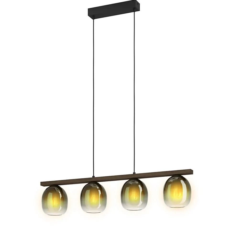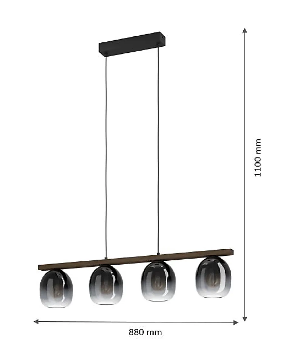 Suspension Filago 4 lumières E27 IP20 40W L.88xl.15xH.110cm noir et bois Eglo