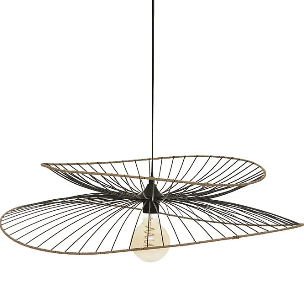 [img-27566-left-home_default] Description: Vous rêvez de donner un style contemporain à votre intérieur ? La suspension filaire « Alara » d’Atmosphera en métal est là pour vous. Un modèle tendance Le luminaire bimatière « Alara » se présente sous forme d’un double abat-jour en fer. Les contours sont recouverts de papier effet bois pour apporter de la chaleur au modèle. Grâce à son câble, vous pourrez ajuster la hauteur de votre lampe de plafond à votre convenance. La modernité dans un luminaire Cette suspension « Alara » présente une allure très design. 2-en-1, elle sera aussi utile pour éclairer votre pièce que pour la décorer, tant elle est élégante. Pour harmoniser votre décoration d’intérieur, pourquoi ne pas associer votre lampe « Alara » à une table basse en bois Atmosphera ? Le petit plus déco Installez une ampoule à filament pour accentuer le côté déco de votre luminaire. Spécificités techniques : Dimensions : D. 69,5 x H. 17,5 cm Longueur câble : 95 cm Matière de la structure : Fer Matière du supportCaractéristiques et avantages