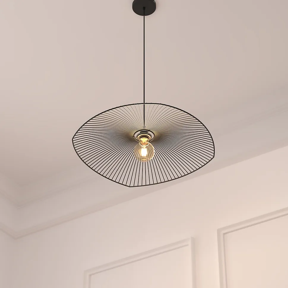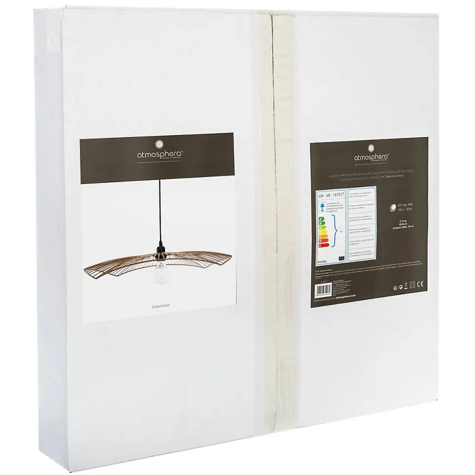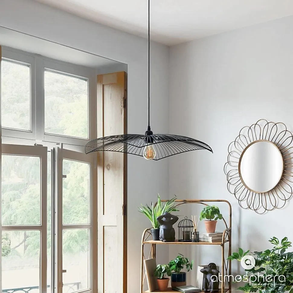 Besoin d’un nouveau luminaire pour votre coin salon ou votre chambre ? Vous pouvez faire confiance à la suspension filaire noire « Cuzco » Atmosphera. Un design ultra-light Très tendance, la suspension en métal filaire « Cuzco » se démarque par son chapeau ondulé semblant suivre le mouvement de l’air. Elle convient aussi bien à un aménagement minimaliste qu’un brin industriel. Qui ne tient qu’à un fil La suspension « Cuzco » est entièrement réalisée en métal filaire, un matériau robuste qui laisse passer la lumière et renforce son côté aérien. Grâce à son long câble, vous pouvez placer le luminaire à la hauteur qui vous convient : bas dans un salon, plus haut dans une pièce de passage. Optez pour un miroir avec cadre en métal Atmosphera pour renforcer le côté design et contemporain de cette suspension. Le petit plus déco N’oubliez pas d’ajouter une belle ampoule rétro pour mettre en valeur vos luminaires en métal filaire.