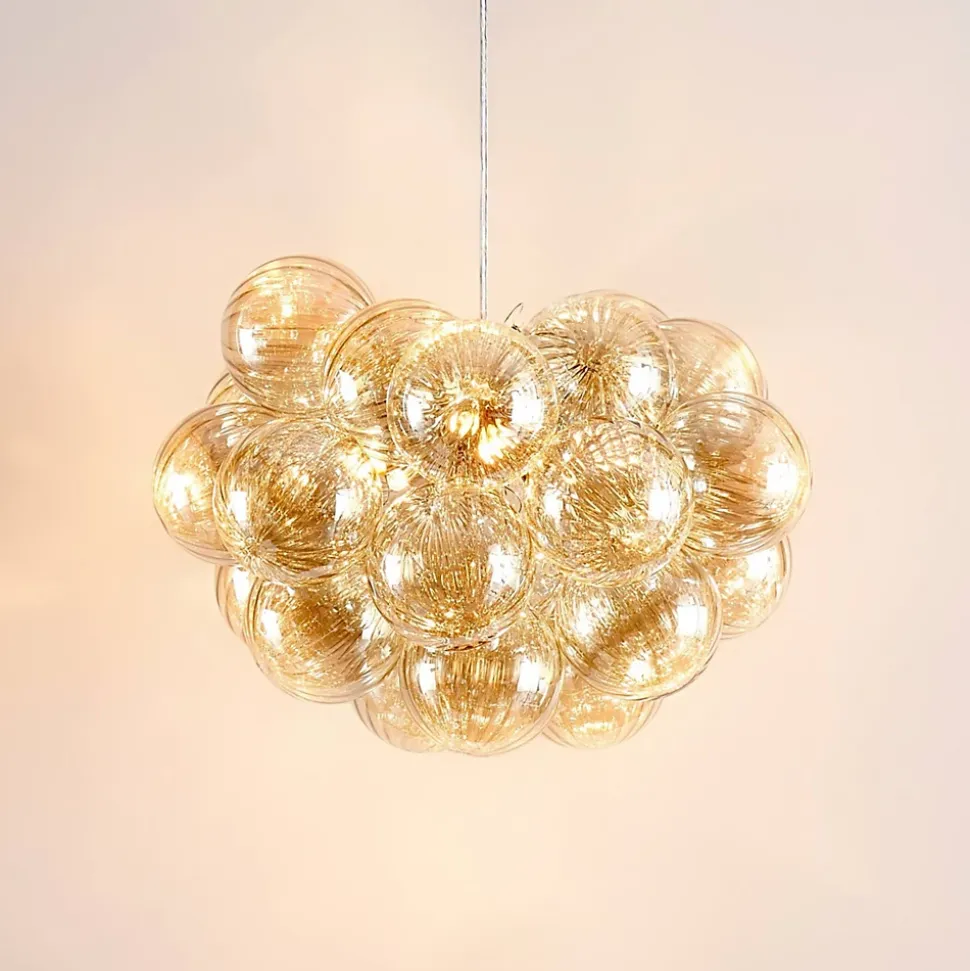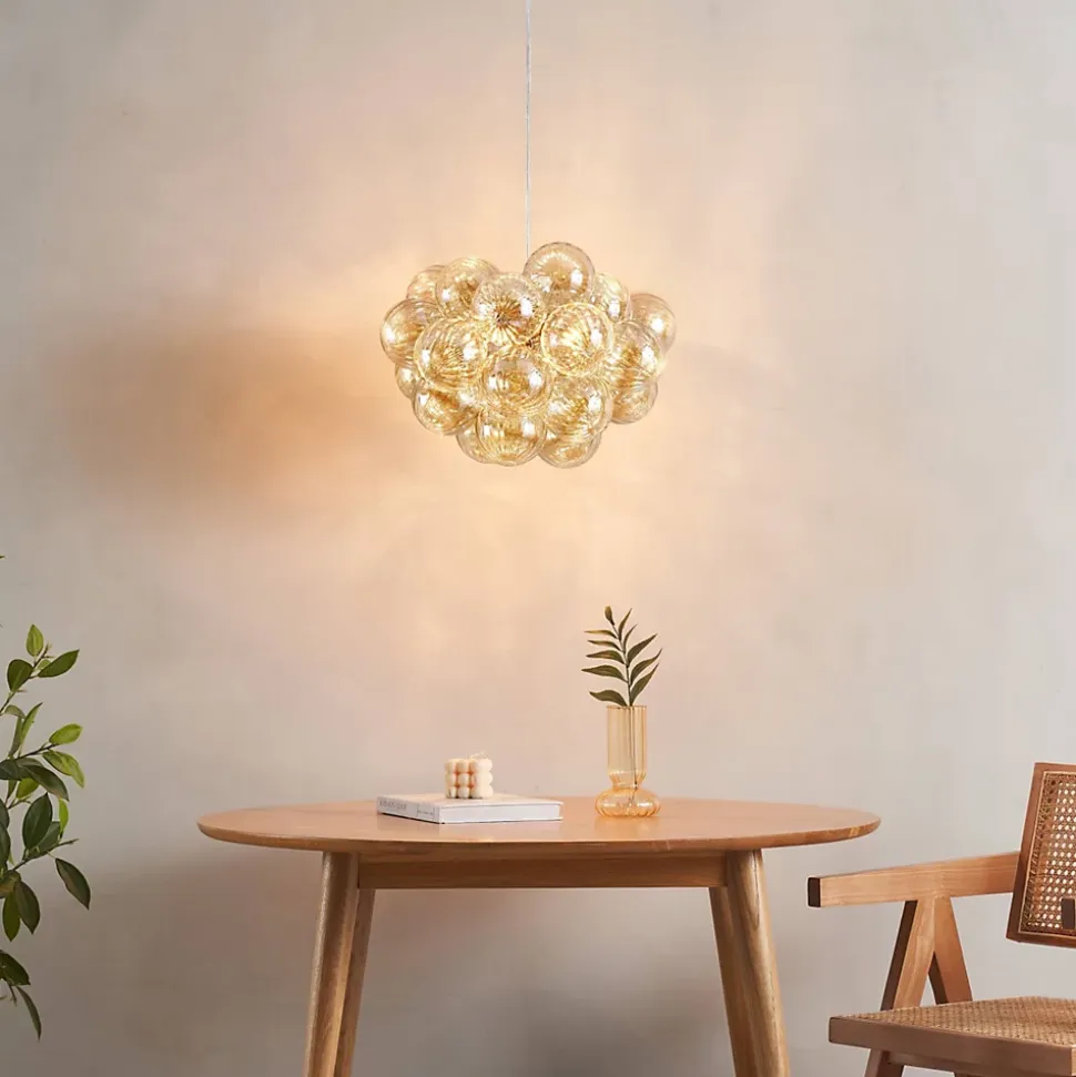 Apportez une touche sophistiquée à votre intérieur avec Maeli, une suspension chromée au look « bouquet lumineux ». Ses cinq abat-jour en verre stylisé forment un ensemble élégant, idéal pour éclairer une entrée ou un salon. Fonctionne avec 5 ampoules G9 (non incluses) pour une lumière diffuse et chaleureuse.) Assemblage à faire par vos soins (