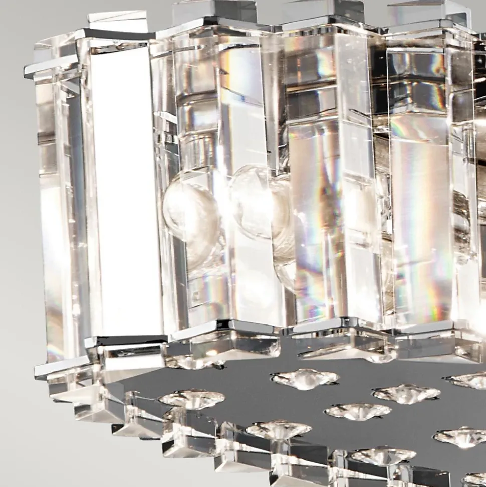 La collection Crystal Skye présente des prismes de cristal triangulaires qui reposent à l’intérieur des détails chromés et sont prêts à refléter la lumière de cent façons différentes. Des cristaux arrondis sur le fond reflètent la lumière intérieure. Cette gamme est classée IP44 et entièrement équipée de LED. Elle peut être utilisée en toute sécurité dans les salles de bains et dans toutes les autres pièces de la maison.