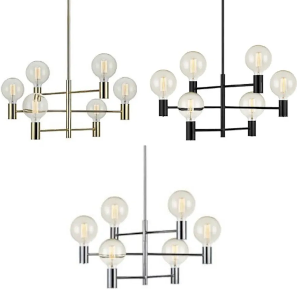 Les caractéristiques techniquesCette suspension lumineuse en métal noir, chrome ou laiton fonctionne avec 6 ampoules E27, non fournies, ce qui vous offre l’opportunité de choisir température de couleur et intensité lumineuse en fonction de vos goûts et besoins.Les avantages esthétiquesLes designers de la marque suédoise Markslöjd ont créé pour vous cette majestueuse suspension en métal noir, chrome ou laiton.Ses dimensions imposantes (hauteur 1,56 m, largeur 62 cm) en font le luminaire idéal pour de grandes hauteurs sous plafond dans un loft ou un appartement haussmanien.Elle trouvera aussi sa place dans un salon ou une entrée cathédrale, une cage d’escalier, un hall d’hôtel.Ses lignes sobres et épurées permettent à la Suspension Capital Markslöjd de s’harmoniser avec tout type de décoration, contemporaine, classique ou ancienne.Cette suspension fonctionne avec 6 ampoules E27, non fournies.Afin de sublimer l’esthétique de cette magnifique suspension, nous vous conseillons de l’équiper d’ampoules globes à filament.Cette suspension existe en version laiton, chrome ou noire.