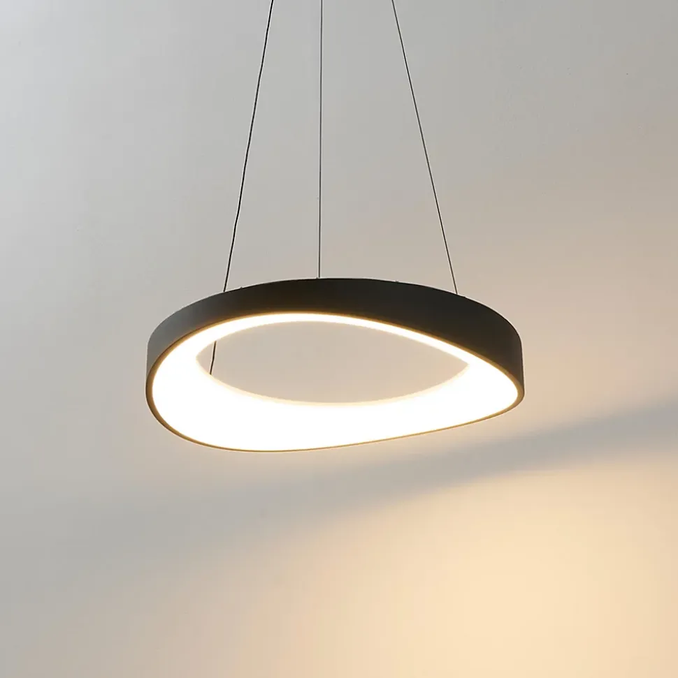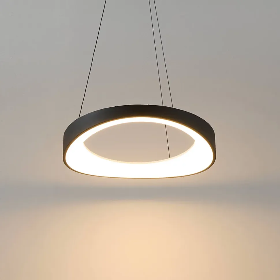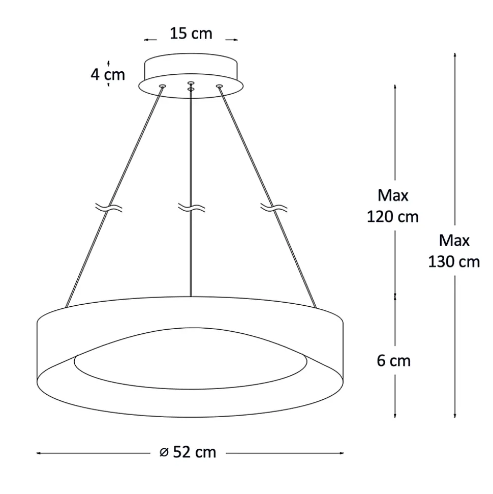 La suspension Linisia, d’un diamètre de 52 cm, est dotée de LED intégrées et d’une hauteur ajustable. Sa forme en anneau et son design minimaliste lui permettent de s’adapter à divers espaces, que ce soit dans une salle à manger, une chambre ou un bureau. Suspendue par quatre câbles fins, elle diffuse une lumière blanche chaude qui s’intègre parfaitement à tout type de décoration intérieure grâce à son style sobre et moderne.) Livré monté, prêt à installer (