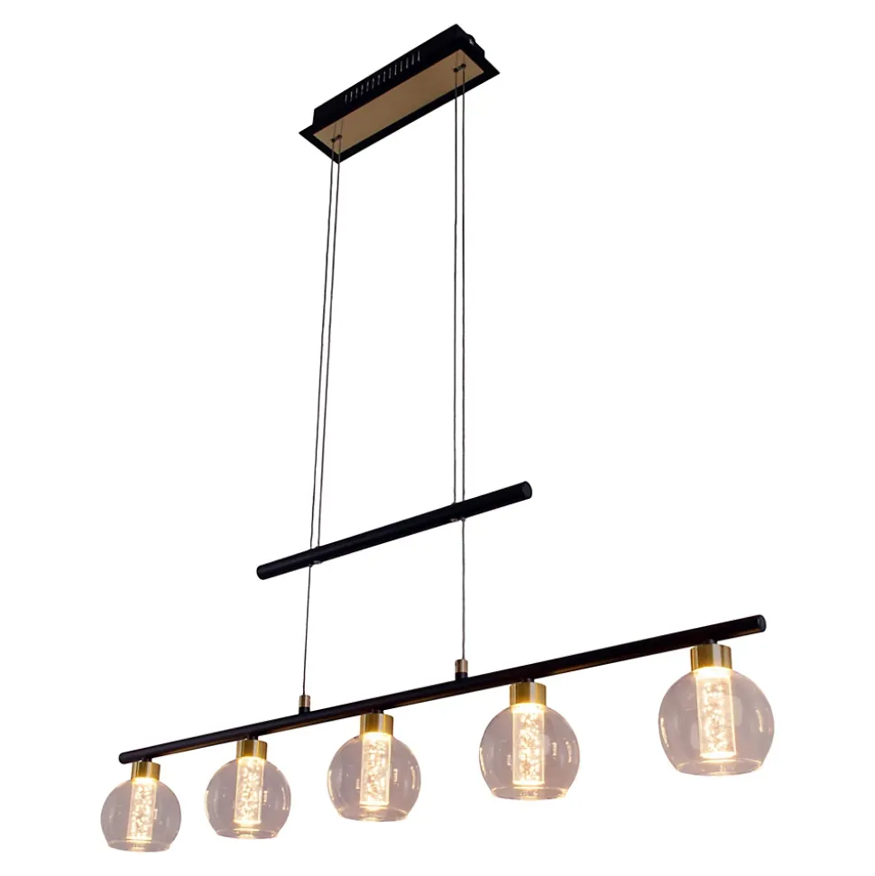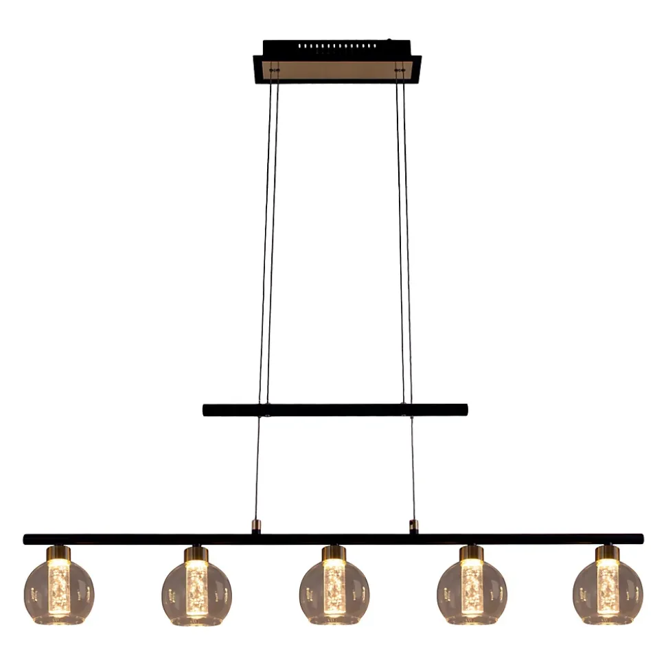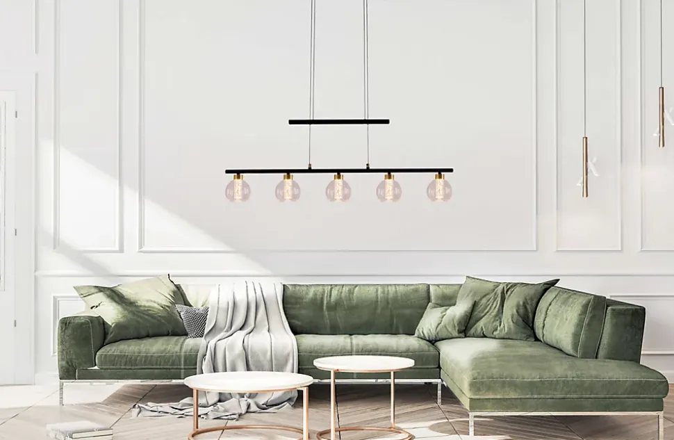 La suspension de notre collection BRASS – Un point fort pour votre intérieur Grâce à leur éclairage direct et focalisé, les suspensions sont idéales pour éclairer les tables de salle à manger, les îlots de cuisine, les espaces de travail ou tout espace nécessitant une lumière ciblée. Elles mettent l’accent et fournissent une source de lumière claire pour différentes tâches. Son aspect décoratif et sa forme de poutre font de cette lampe de style rétro un élément indispensable pour tous ceux qui apprécient un intérieur harmonieux. Avec son design en métal et en verre noir, cette lampe attire particulièrement l’attention. La combinaison de la structure laquée/lasée et de l’abat-jour clair/transparent donne une image d’ensemble harmonieuse. La suspension mesure 90 cm de long, 10 cm de large/profondeur et 150 cm de haut. Entre 120 et 150 cm, la longueur de la suspension peut être réglée à volonté. Avec cette suspension, vous disposez d’une possibilité d’éclairage esthétique pour vos pièces de vie. Avec une platine équipée de 5 LED, la lumière se fait dans l’obscurité. Et ce, d’une manière très attrayante. L’éclairage est entièrement intégré dans le design. Ce luminaire correspond à la classe 2. Pour le fonctionnement sur secteur de cet appareil, une tension de réseau de 220-240V ~ 50Hz est nécessaire. Le luminaire de 16 watts a une intensité lumineuse de 1200 lumens et une température de lumière de 2900 kelvins. Grâce à la possibilité de varier l’intensité, la luminosité peut être adaptée aux besoins respectifs. Créez l’ambiance souhaitée avec notre suspension de haute qualité et donnez à votre maison un sentiment de confort et de style dans chaque pièce.