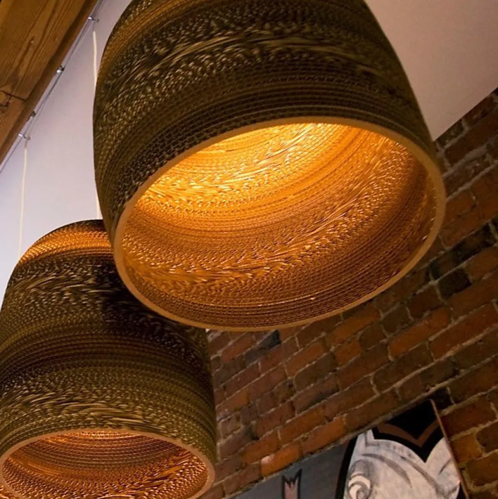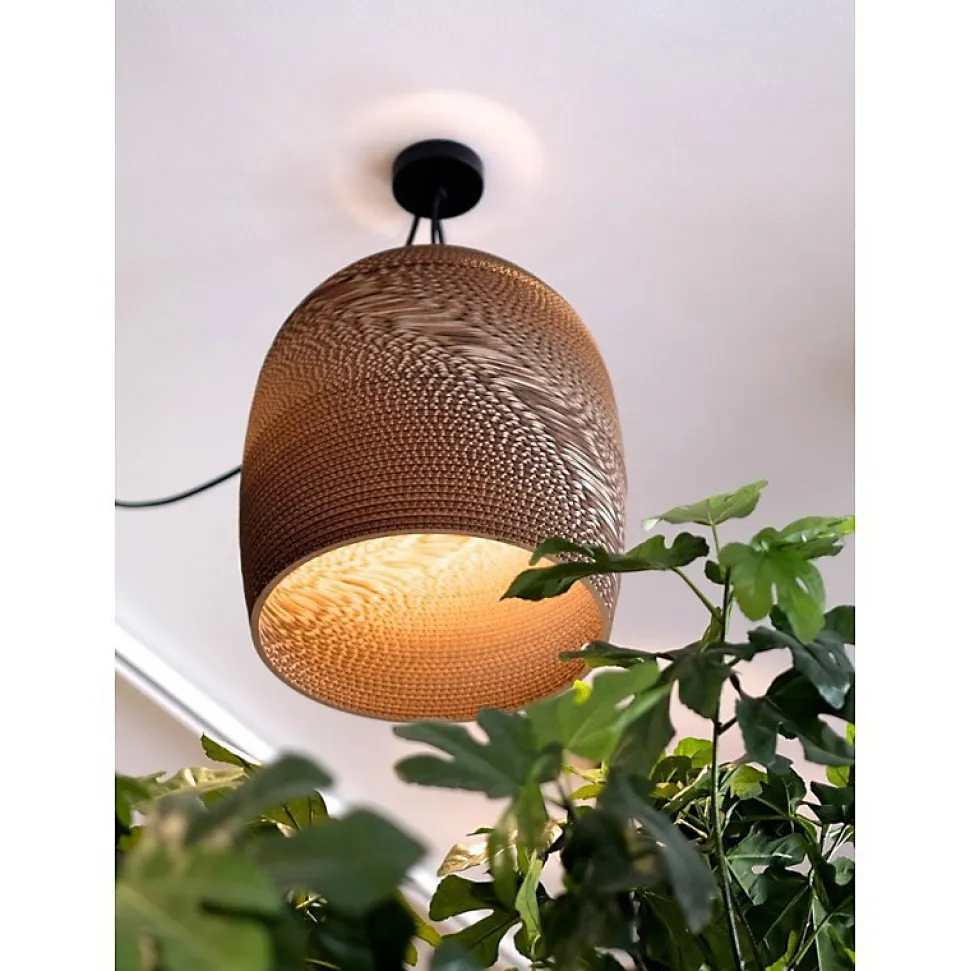 Les caractéristiques techniquesCette suspension est composée d’une rosace de plafond en métal laqué noir, d’un câble de suspension haut de gamme en textile noir et d’un abat-jour en lamelles de carton local recyclé assemblées à la main. Un processus de fabrication innovant et unique en garantit la durabilité et la solidité.Dimension de la suspension : hauteur de 28 ou 40 cm, diamètre de 27 ou 38 cm et le câble textile de 2 m (réglable).Les produits utilisés (adhésif et produit ignifuge) sont garantis non-toxiques.Ce luminaire fonctionne avec une ampoule E27 de 40 watts maximum, non fournie, ce qui vous permet de choisir température de couleur et intensité lumineuse en fonction de vos goûts.Les avantages esthétiquesSeth Grizzle et Jonathan Junker, fondateurs de Graypants ont imaginé pour vous cette suspension en carton recyclé.L’esthétique minimaliste de ce lustre de forme cloche se marie harmonieusement avec une décoration contemporaine épurée.La lumière priojetée au travers des ondulations du carton produit un éclairage chaleureux et intime.Vous pourrez installer la Suspension Bell dans votre pièce à vivre, au-dessus de l’îlot central de votre cuisine, dans un bar ou une salle de restaurant.Si vous placez plusieurs suspensions dans la même pièce, vous pourrez jouer sur différentes hauteurs et formes pour créer l’originalité.Chaque produit Graypants est fabriqué à la main et estampillé du prénom de la personne qui l’a assemblé.Le processus de fabrication unique fait de chaque luminaire une pièce exceptionnelle.Dans le cadre d’une démarche économique de qualité et de solidarité, les luminaires Graypants sont fabriqués aux Pays-Bas par des personnes à capacité réduite. Le carton utilisé est collecté localement.