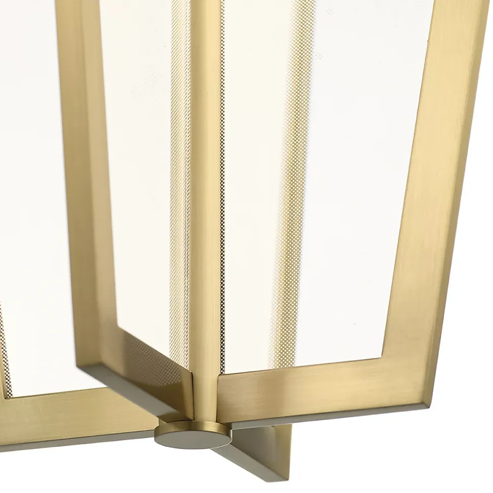 La collection Calters présente un design moderne de lanterne effilée dans une finition or champagne. Les bandes LED dissimulées à intensité variable éclairent des panneaux de guidage de la lumière en acrylique clair avec un motif en pointillé pour un design classique et moderne.
