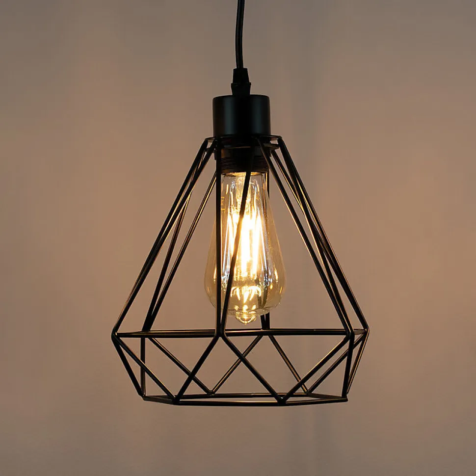Suspension LOFT ALAMBRA LARGO avec douille E27 – noire. Luminaire d’intérieur idéal pour la maison le bureau ou le restaurant. Finition mate au style industriel. Abat-jour géométrique parfait pour les intérieurs de type loft.DONNÉES GÉNÉRALES:✔️Utilisation : intérieur✔️Type de montage : en saillie✔️Lieu d’installation : plafond✔️Type de connexion : borne à vis✔️Couleur : noir✔️Finition : mate✔️Matériau : acierDimensions [mm] :✔️ rosace : ø100x24mm✔️abat-jour : 200x205x154mm✔️ hauteur totale : 1310mm✔️ longueur du câble : 1040mm✔️Réglable : non✔️Abat-jour : mat✔️Douille incluse : oui✔️Type de douille : E27✔️Nombre de douilles : 1✔️Source lumineuse incluse : nonDONNÉES TECHNIQUES:✔️Puissance maximale [W] : 60W✔️Tension nominale [V] : 220–240 V AC✔️Fréquence nominale [Hz] : 50–60 Hz✔️Indice de protection : IP20✔️Classe de protection : I✔️Contenu en mercure : non✔️Température ambiante [°C] : -20…+50°C