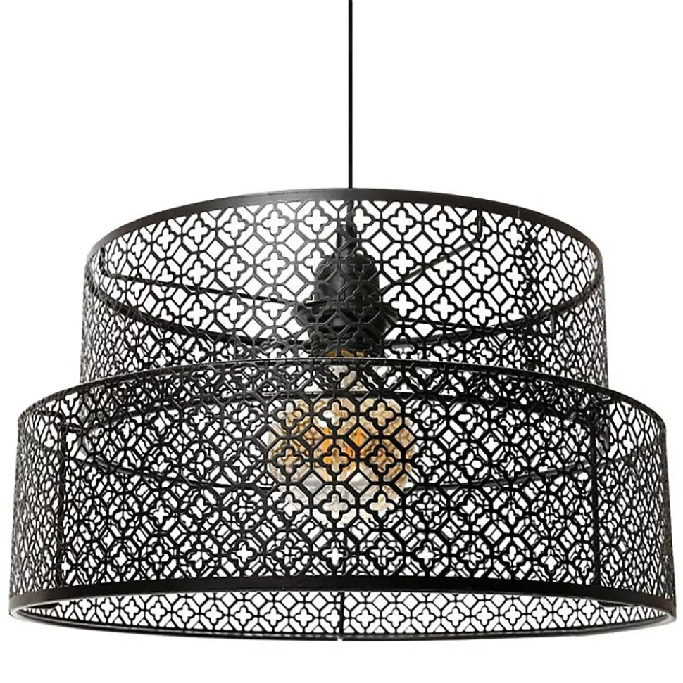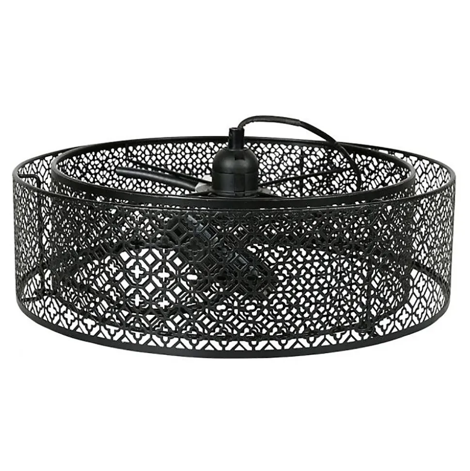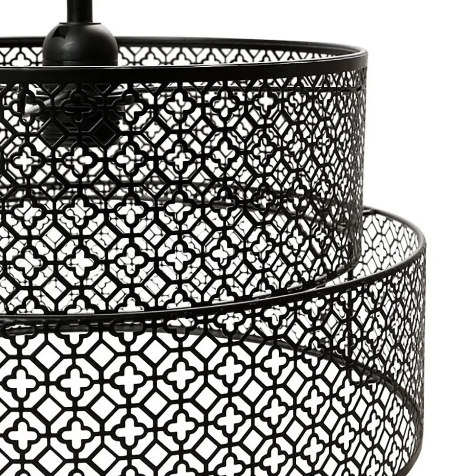Suspension métal ajouré gigogne Aurore noirDécouvrez cette très moderne suspension en métal ajouré gigogne Aurore noir dans un style cylindrique moderne.C’est incroyable comme une suspension peut faire toute la différence. Un éclairage judicieusement étudié créé des espaces adaptés à toutes les activités. De plus, l’ambiance peut changer tous les soirs – d’une simple pression sur un interrupteur.Informations sur la suspension en métal ajouré gigogne Aurore noir :Dimensions : D. 34,5 x H. 20 cmLongueur de câble : 115 cmPoids : 1 kgDouille E27 Max 60WAmpoule non fournieLuminaire compatible avec des ampoules de toutes classes d’énergie