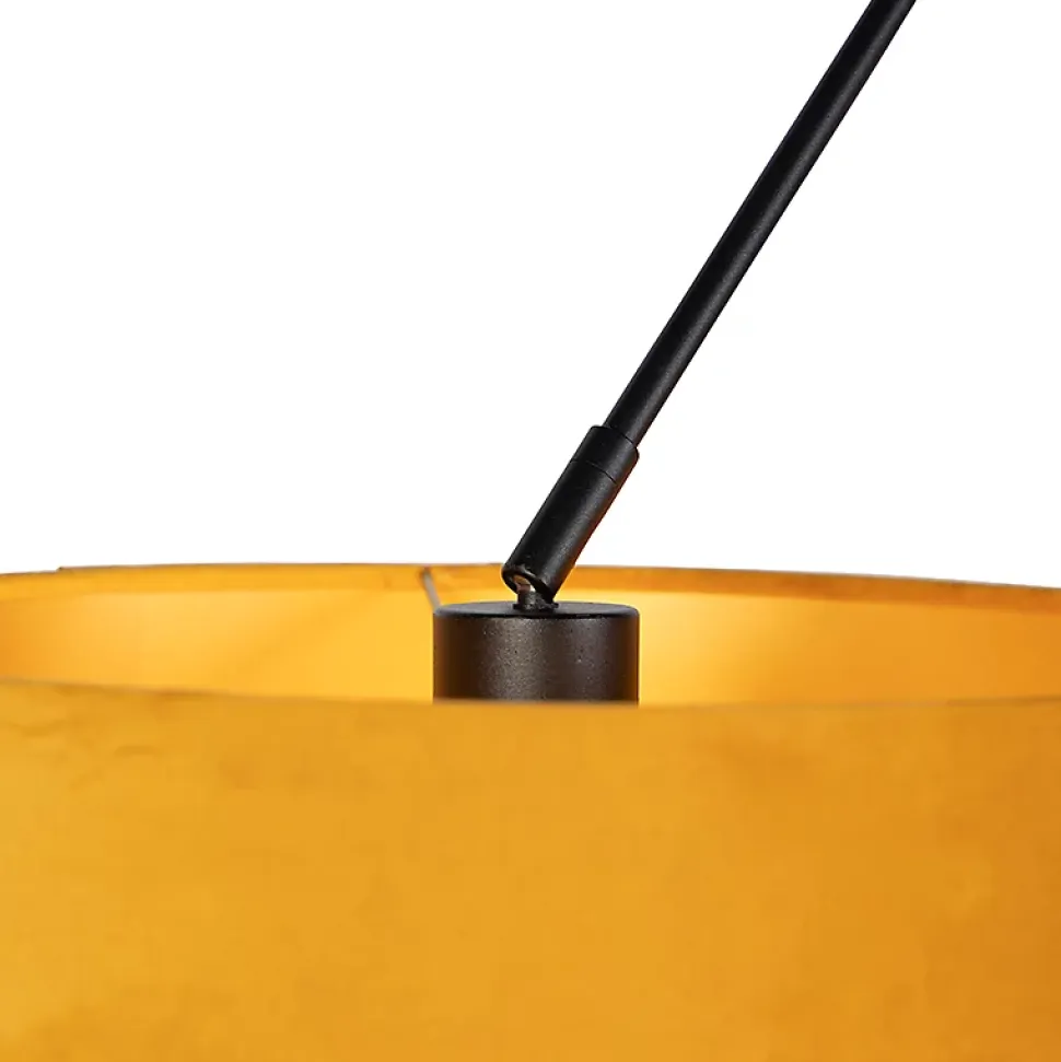 Une forme robuste, un bel abat-jour ! C’est la suspension Blitz. La hauteur totale de la lampe est de 150 cm. La plaque de montage pour le plafond a un diamètre de 15 cm. La lampe est finie avec deux abat-jour en velours de couleur jaune ocre, tous deux avec un diamètre de 35 cm. Un bel avantage de ces abat-jour est l’intérieur doré, qui crée un bel effet d’éclairage ! Elle trouvera parfaitement sa place dans votre chambre, votre salon ou votre couloir. Complétez votre suspension avec deux belles ampoules qui s’adaptent à un culot E27 (60W maximum chacune). La lampe peut également être atténuée avec un variateur externe ; une ambiance encore plus cosy le soir avec la Blitz. Avec cette suspension, vous optez pour un look romantique et robuste pour votre intérieur.