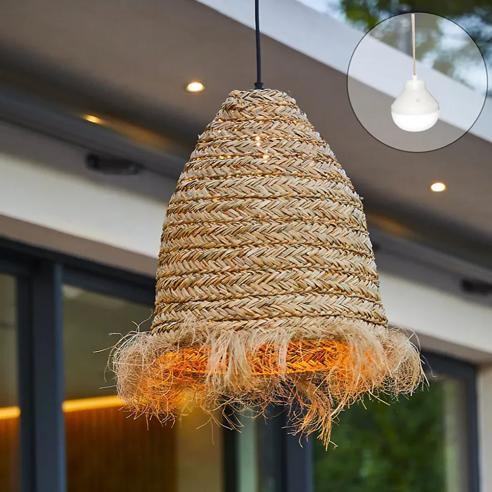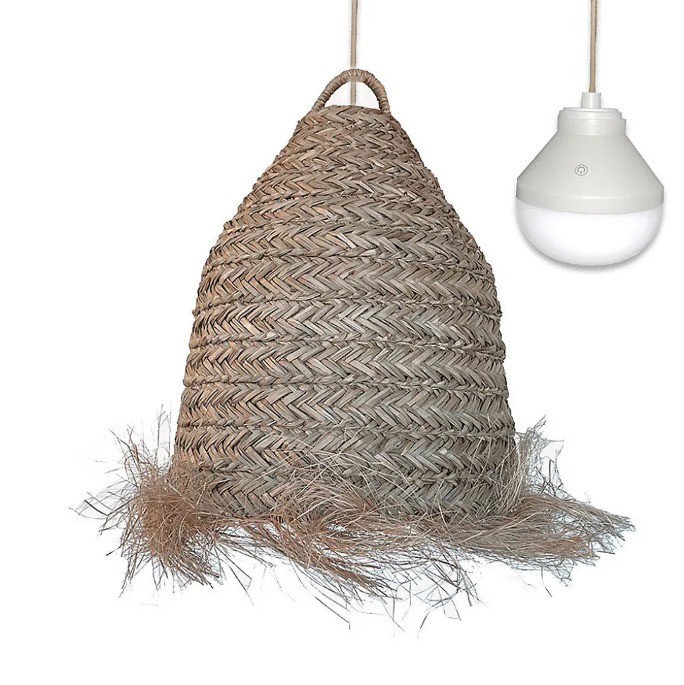La suspension artisanale Anafi Nomad est fabriquée en jonc de mer naturel, une fibre végétale résistante et insensible à l’humidité. Ce luminaire au style ethnique chic de 41x41x47 cm est livré avec l’ampoule LED autonome Lys proposant un éclairage blanc chaud et multicolore RGB. Grâce à sa base magnétique et sa télécommande, elle se suspend partout sans contrainte de câblage fixe pour une décoration bohème ou vintage. Sa batterie rechargeable assure une autonomie technique de 12 heures pour accompagner vos moments de détente. Certifiée IP64, elle résiste aux projections d’eau, idéale pour une terrasse ou un jardin. Maintenez l’abat-jour à l’abri de l’humidité directe pour une tenue durable. Son style intemporel s’accorde aussi bien avec une décoration moderne qu’avec un esprit plus bohème ou industriel. Facile à intégrer à votre aménagement, elle apporte un point lumineux décoratif sans alourdir l’espace.