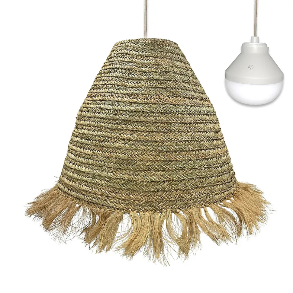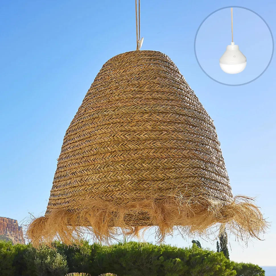 La suspension XXL Big Anafi Nomad est une pièce artisanale en rotin naturel offrant un design majestueux de 100 cm de diamètre pour 80 cm de hauteur. Livrée avec l’ampoule LED autonome Lys, elle diffuse une lumière blanc chaud ou multicolore RGB réglable par télécommande. Sa structure sans fil se suspend n’importe où grâce à une corde naturelle et une base magnétique, offrant une autonomie technique de 12 heures. Certifiée IP64, elle résiste aux projections d’eau pour un usage extérieur sous une pergola ou un grand arbre. Le rotin est une fibre résistante conçue pour durer saison après saison sans altération structurelle. Maintenez l’abat-jour au sec. En jouant sur la hauteur et le positionnement, vous pouvez créer des zones lumineuses plus marquées ou au contraire un éclairage plus diffus.