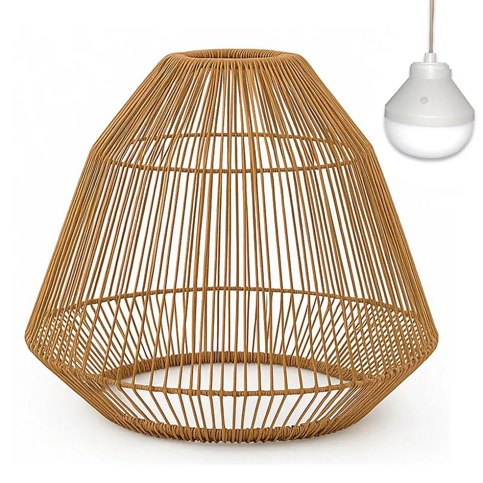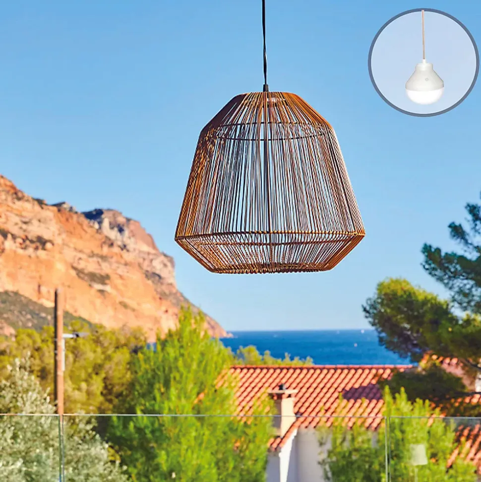 La suspension Maya Nomad en polyrotin tressé à la main apporte une note exotique et chaleureuse à votre décoration intérieure ou extérieure. Ce luminaire de 58 cm de diamètre pour 30 cm de hauteur est livré avec l’ampoule LED autonome Lys offrant un éclairage blanc chaud et multicolore RGB. Grâce à sa télécommande et son système magnétique, elle se suspend librement n’importe où sans aucun besoin de raccordement électrique fixe pour illuminer vos espaces en toute liberté. Sa batterie rechargeable assure une autonomie technique de 11 heures. Certifiée IP44, elle résiste aux projections d’eau et aux rayons UV, idéale pour structurer une terrasse ou un salon durablement chaque soir de l’année. En jouant sur la hauteur et le positionnement, vous pouvez créer des zones lumineuses plus marquées ou au contraire un éclairage plus diffus.