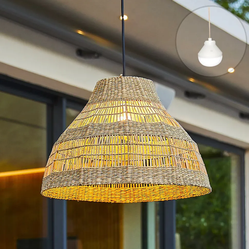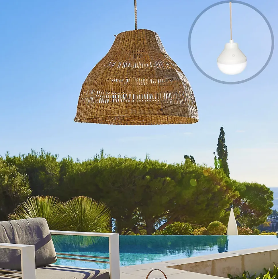 La suspension artisanale Merida Nomad est fabriquée en herbe marine trèssée offrant un design souple et robuste au look ethnique chic. Ce luminaire de 48x48x34 cm est livré avec l’ampoule LED autonome Lys proposant un éclairage blanc chaud et multicolore RGB. Grâce à sa télécommande et sa base magnétique, elle se suspend n’importe où sans aucun raccordement électrique fixe pour illuminer vos soirées festives ou vos moments cosy. Sa batterie rechargeable assure une autonomie technique de 12 heures. Certifiée IP64, elle résiste aux projections d’eau pour un usage extérieur fiable sur une terrasse ou sous une pergola. Maintenez l’abat-jour au sec. Facile à intégrer à votre aménagement, elle apporte un point lumineux décoratif sans alourdir l’espace. L’entretien reste simple : un chiffon doux suffit pour conserver un rendu soigné au fil des saisons.