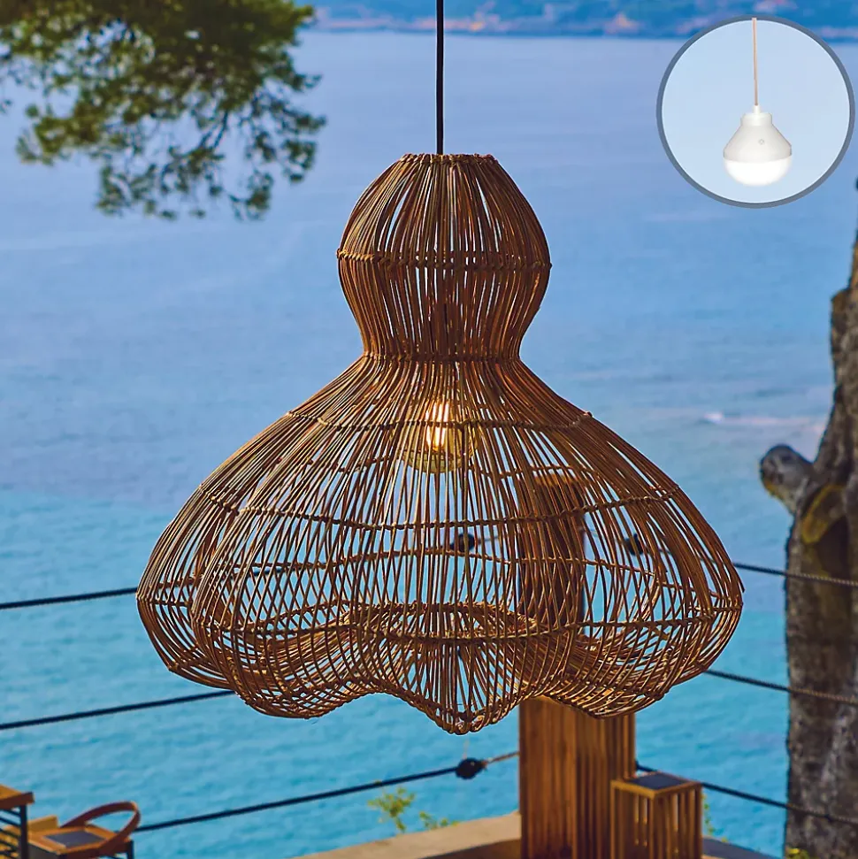 La suspension artisanale Ronda Nomad est fabriquée à partir de cordage naturel trèssé à la main au Vietnam offrant un look ethnique chic. Ce luminaire de 60 cm de diamètre pour 53 cm de hauteur est livré avec l’ampoule LED autonome Lys offrant un éclairage blanc chaud et multicolore RGB. Grâce à son système magnétique et sa télécommande, elle se suspend librement n’importe où sans aucun raccordement électrique pour illuminer vos espaces en toute liberté. Sa batterie rechargeable assure une autonomie technique de 11 heures. Certifiée IP44, elle résiste aux projections d’eau pour un usage extérieur durable sur une terrasse ou sous une pergola. Pour une longévité maximale, maintenez l’abat-jour au sec. Pour un effet encore plus chaleureux, combinez-la avec d’autres sources de lumière et variez les hauteurs d’installation.