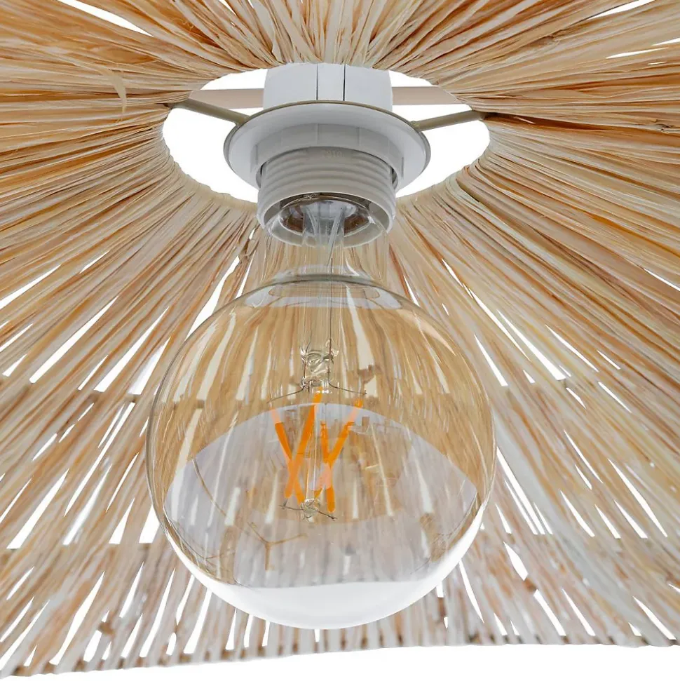 La suspension « Orane » Atmosphera séduira les inconditionnels de matières naturelles ! Avec un design dans l’air du temps et un diamètre généreux, sa canopée en raphia est idéale pour éclairer une salle à manger ou une chambre à coucher d’une lumière chaleureuse. Ajustable en hauteur selon vos besoins, elle peut être équipée d’une ampoule d’un blanc chaud pour plus de convivialité ! Complétez votre déco en choisissant des accessoires en jute ou en jacinthe d’eau pour harmoniser. Abat-jour en raphiaHauteur ajustableLongueur du câble : 80 cmDouille d’ampoule : E27Puissance maximale : 25 WAmpoule non incluse Déballage et montage Durée du montage : 5 mn par une personne seule. Lors de l’ouverture de votre colis, veillez à ne pas enfoncer une lame trop profondément pour éviter d’endommager le produit. Retirez les éléments de protection et d’emballage avec précaution, sans utiliser d’outils tranchants. Avant de commencer le montage, protégez votre surface de travail pour éviter tout dommage. Suivez attentivement les instructions de la notice incluse dans l’emballage. Conservez l’emballage et la notice quelques jours en cas de retour ou de démontage. Consultez les consignes de tri de votre commune pour recycler correctement votre emballage. Conseils d’entretien Dépoussiérez régulièrement votre suspension « Orane » à l’aide d’un chiffon doux. Les matières naturelles présentent des couleurs et des aspérités rendant chaque pièce unique. Nos photos sont prises en studio, il peut arriver que les couleurs soient influencées par cet éclairage spécifique, mais nous nous efforçons de réaliser des prises de vue aussi proches de la réalité que possible afin d’éviter toute déception lors de la réception de votre produit.