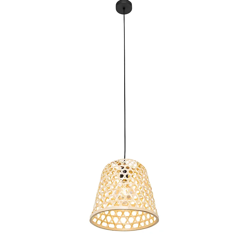 Apportez une touche de chaleur à votre intérieur avec cette suspension orientale. Rayan est en acier et en bambou, et arbore une finition noire et naturelle. La suspension a un diamètre de 30 centimètres et une hauteur de 150 centimètres. Pratique : Rayan peut être réglée en hauteur jusqu’à un minimum de 58,5 centimètres. La plaque de montage mesure 2,5 centimètres de haut et 10 centimètres de diamètre. Créez une ambiance particulière dans votre intérieur en atténuant la lumière de la lampe (variateur non inclus). N’oubliez pas de commander séparément une ampoule avec culot E27 d’une puissance maximale de 25 watts. La suspension est livrée avec un abat-jour d’un diamètre de 30 centimètres et d’une hauteur de 26 centimètres. Rayan sera du plus bel effet dans votre salle à manger, par exemple, ou pourquoi pas dans votre chambre ? Qu’attendez-vous ?