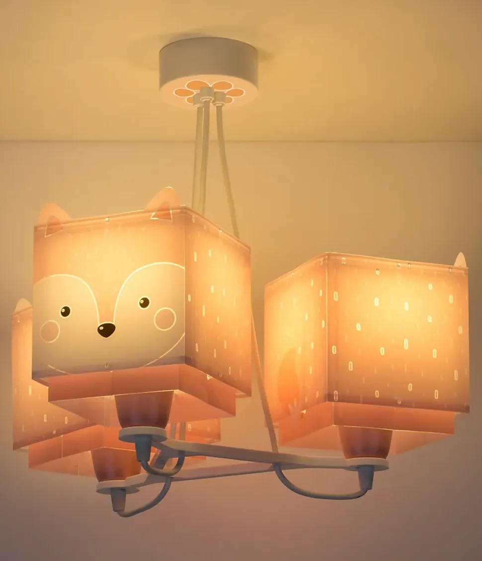 Acheter lustre design pour enfant avec 3 lumières Little FoxLe lustre design pour enfant avec 3 lumières Little Fox vous offre l’éclairage supplémentaire dont vous avez besoin pour la chambre des enfants. Avec son double abat-jour en polypropylène transparent et ce design original de renard, il est parfait pour donner une touche de couleur originale à la chambre des enfants. Il est également réglable en hauteur pour une parfaite adaptation aux caractéristiques de la pièce.Combinez le lustre pour enfants à 3 lumières Little Fox avec le reste des lampes du même design pour créer un ensemble plein de couleurs.