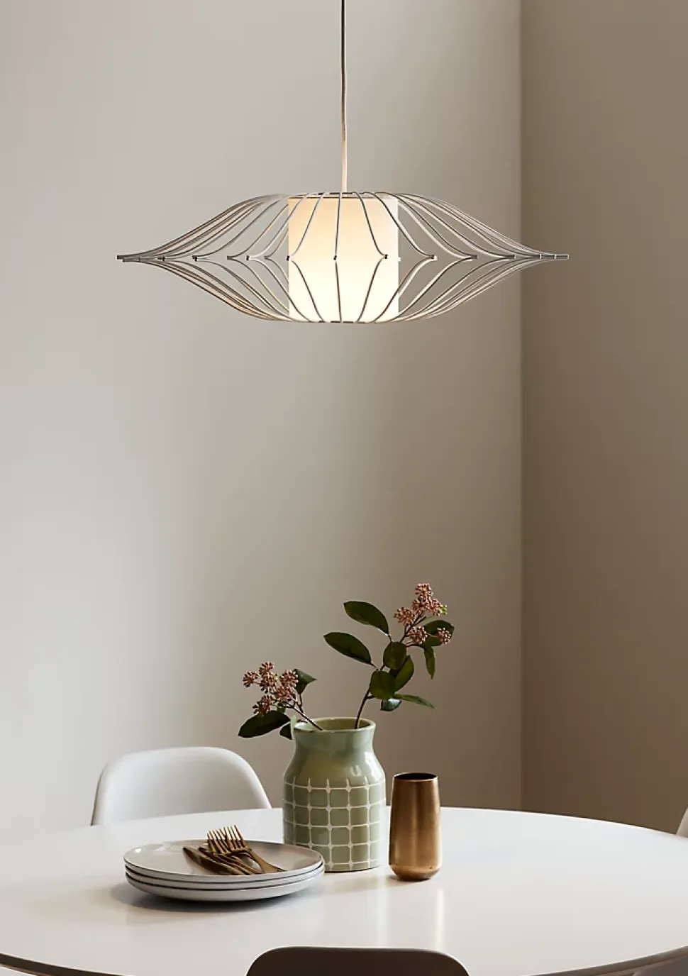 Nos suspensions ont été conçues dans un certain nombre de styles, de finitions et de caractéristiques pour vous permettre de trouver facilement celle qui vous convient. Cette suspension blanche en métal peut parfaitement servir de source de lumière principale