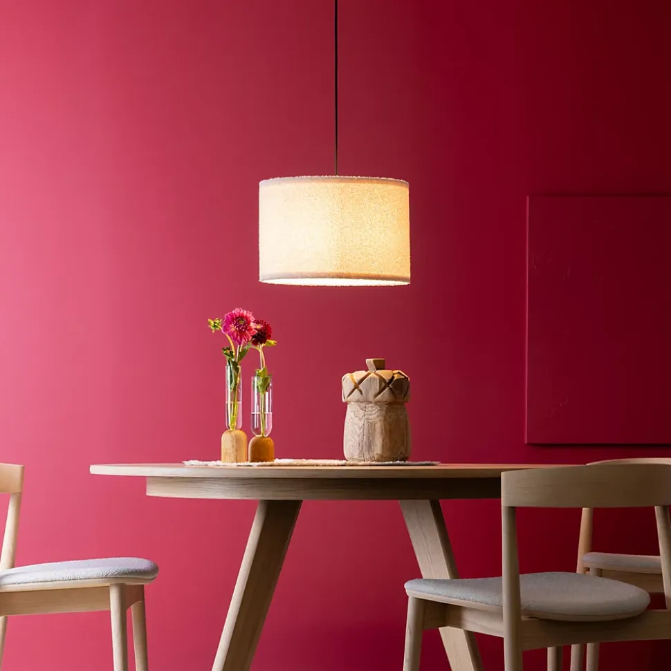 - L’abat jour en tissu bouclette assure une diffusion douce de la lumière