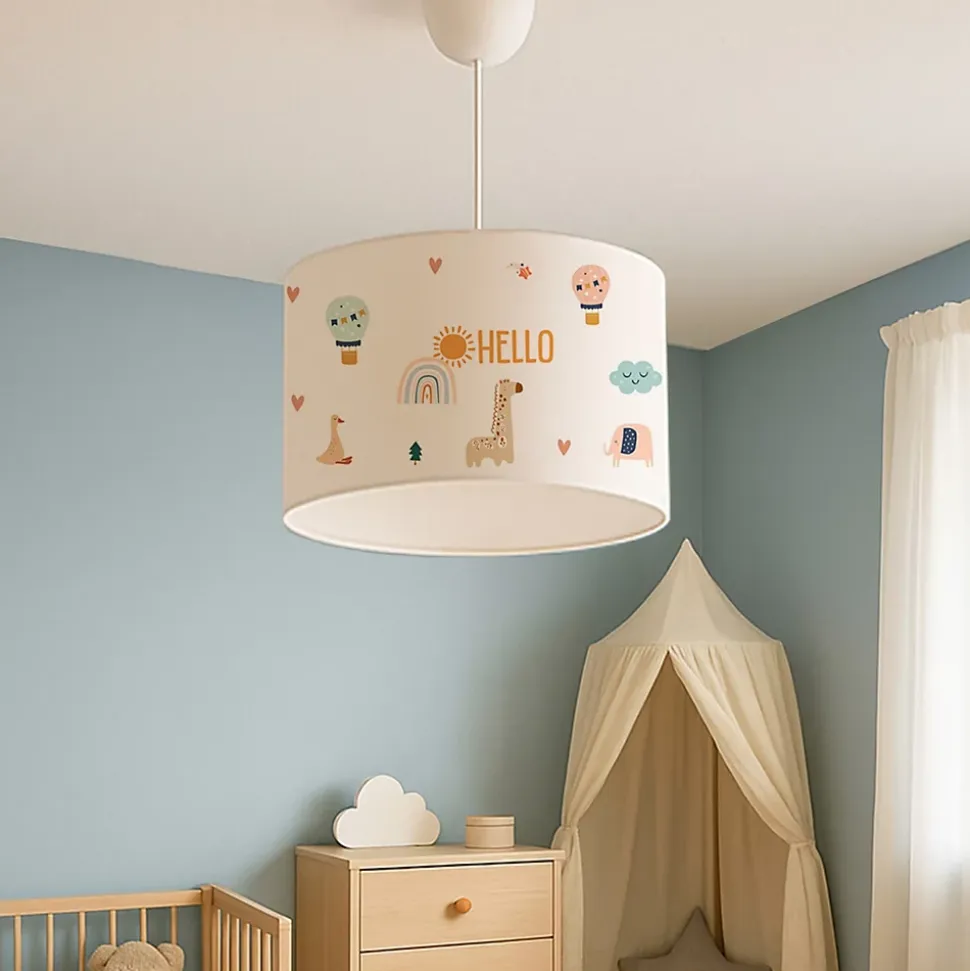 - Design enfantin et plein de charme : l’abat-jour est orné d’un motif joyeux et coloré qui stimule l’imagination tout en s’intégrant facilement dans tous les styles de décoration pour chambre d’enfant.