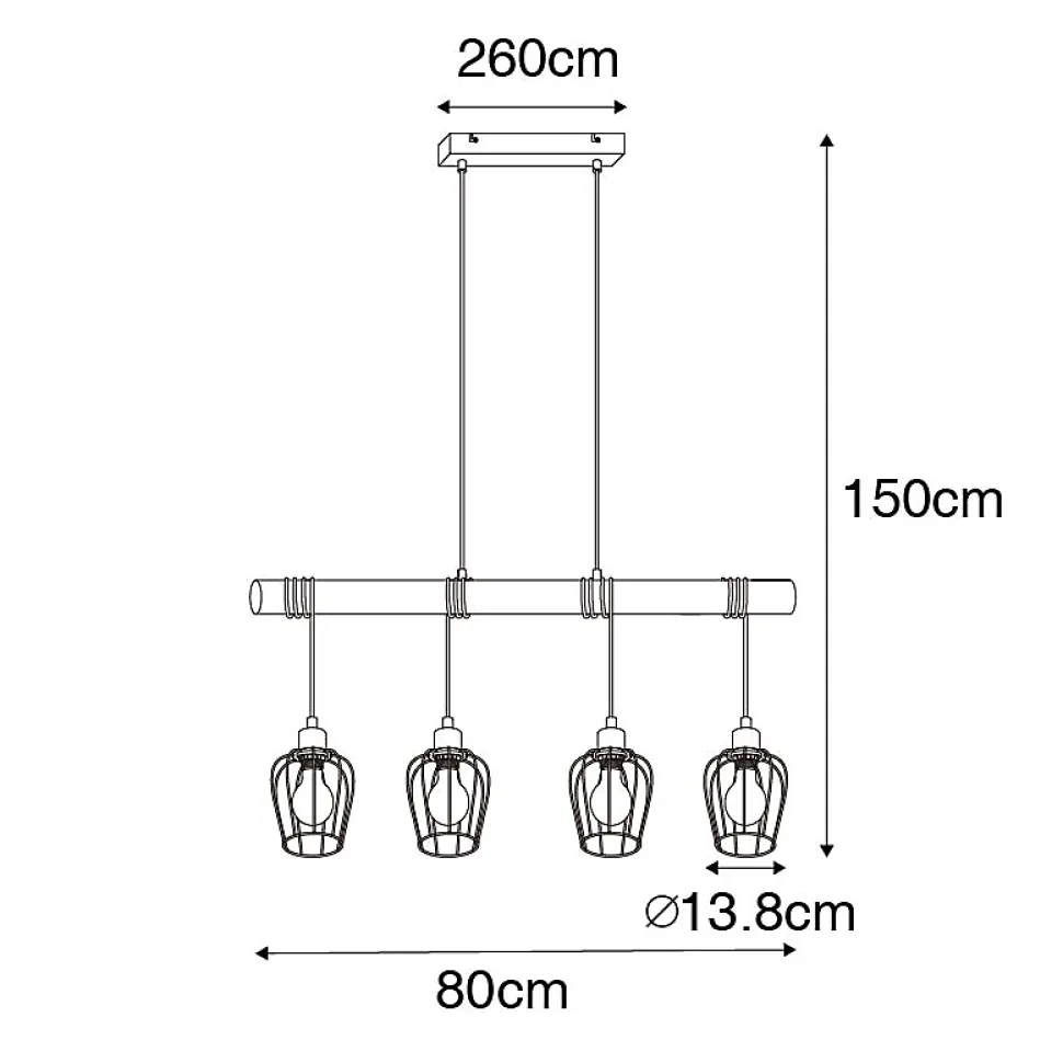 Donnez une touche rustique à votre intérieur avec la suspension Stronk. Fabriquée en bois et en acier, l’acier est fini en noir. La suspension mesure 80 cm de long, 13,8 cm de large et est réglable en hauteur ; minimum 60 cm et maximum 150 cm. La plaque de montage mesure 2,5 cm de haut, 26 cm de long et 8 cm de large. Les abat-jour ont chacun un diamètre de 13,8 cm et une hauteur de 14 cm. N’oubliez pas d’ajouter quatre ampoules avec un culot E27 (60W maximum) pour compléter la lampe. Créez une atmosphère chaleureuse dans votre salon, votre salle à manger ou votre bureau avec la suspension rustique Stronk.