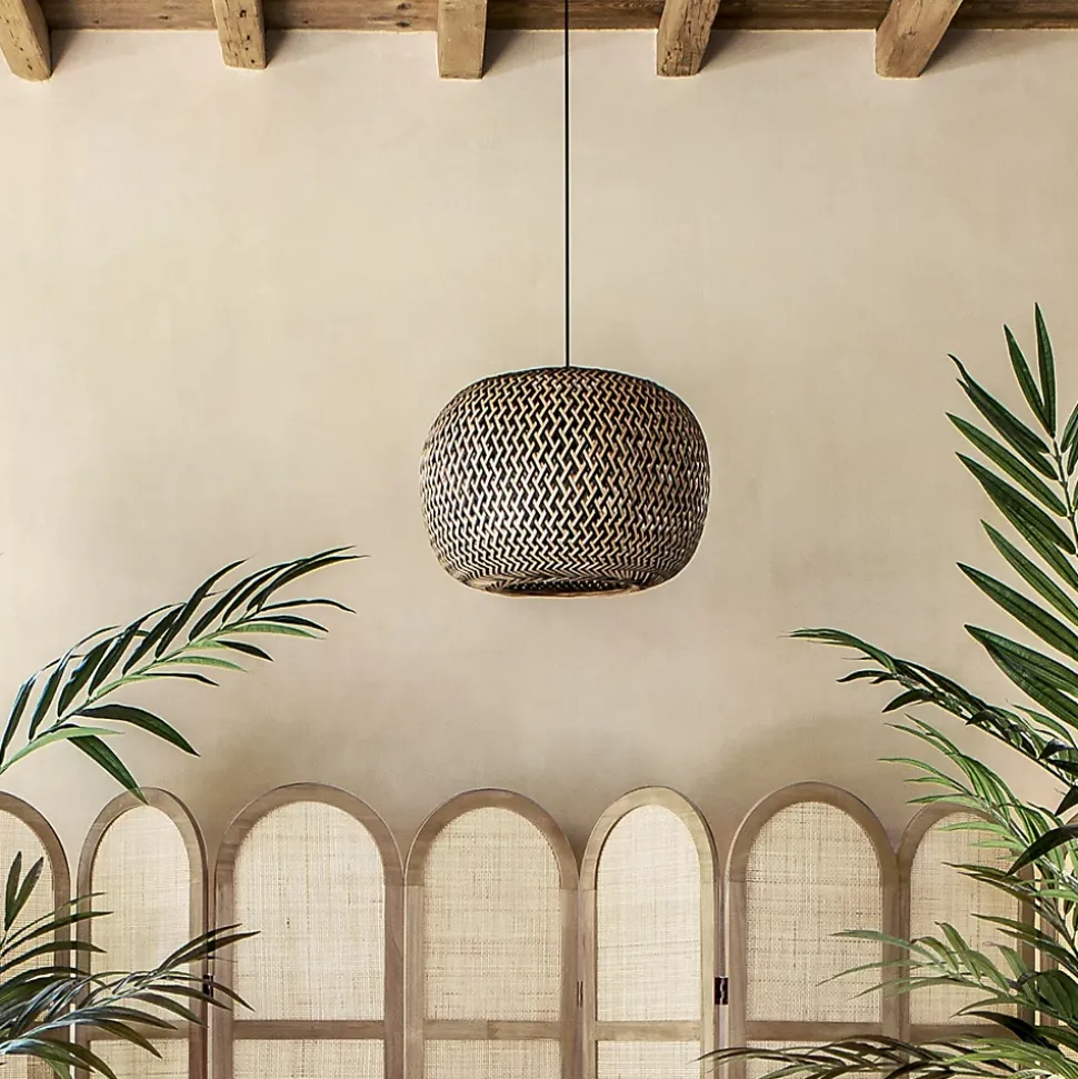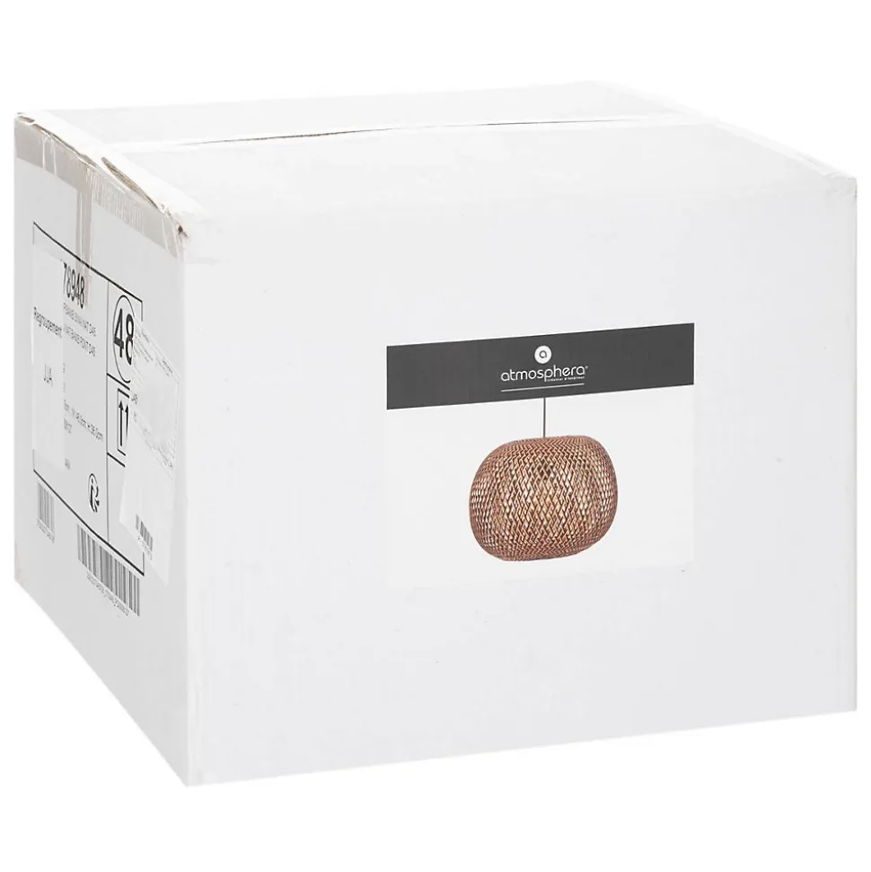 Pour un luminaire à la fois chic et naturel, découvrez la suspension « Sinai » Atmosphera. La matière au service du style Avec un tressage en bambou régulier créant un quadrillage en losange, cette suspension apporte du caractère à votre pièce. La suspension « Sinai » s’inscrit clairement dans un style ethnique chic au top de la tendance. Une décoration intemporelle Ce luminaire s’accordera aussi bien à un intérieur vintage que moderne. À vous de choisir quelle ambiance vous souhaitez donner à votre pièce en combinant mobilier moderne et objets traditionnels par exemple. Créez du contraste dans votre salon en associant cette suspension avec un fauteuil en velours Atmosphera pour une ambiance toujours plus accueillante. Le petit plus déco Pour un espace invitant à la relaxation, jouez sur les formes arrondies avec des fauteuils oeuf suspendus autour de ce luminaire.