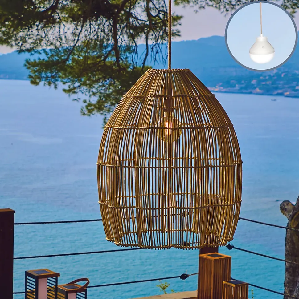 La suspension artisanale Avila Nomad est fabriquée à partir de cordage naturel tressé à la main au Vietnam. Ce luminaire au look ethnique chic de 50 cm de diamètre pour 60 cm de hauteur est livré avec l’ampoule LED autonome Lys offrant un éclairage blanc chaud et multicolore RGB. Grâce à son système magnétique et sa télécommande, elle se suspend librement n’importe où sans aucun raccordement électrique pour une décoration bohème ou vintage. Sa batterie rechargeable assure une autonomie technique de 11 heures, idéale pour illuminer vos espaces en toute liberté. Certifiée IP44, elle résiste aux projections d’eau pour un usage extérieur durable sur une terrasse ou sous une pergola. Pour une longévité maximale, maintenez l’abat-jour dans un endroit sec. Il s’intègre facilement dans différents espaces : salon, chambre, bureau, entrée ou coin lecture, selon l’ambiance recherchée.