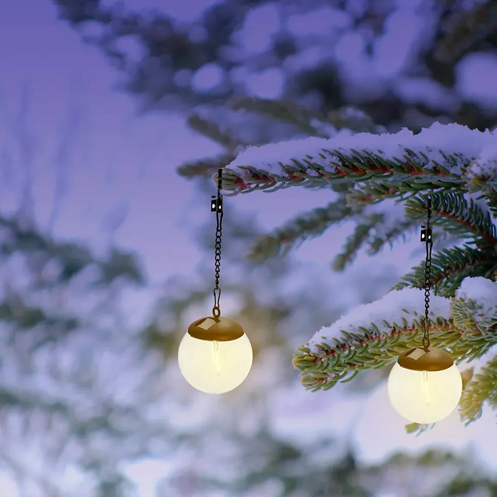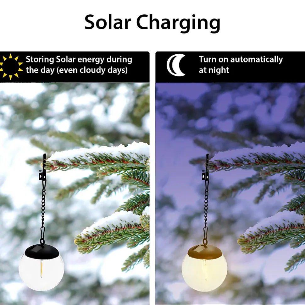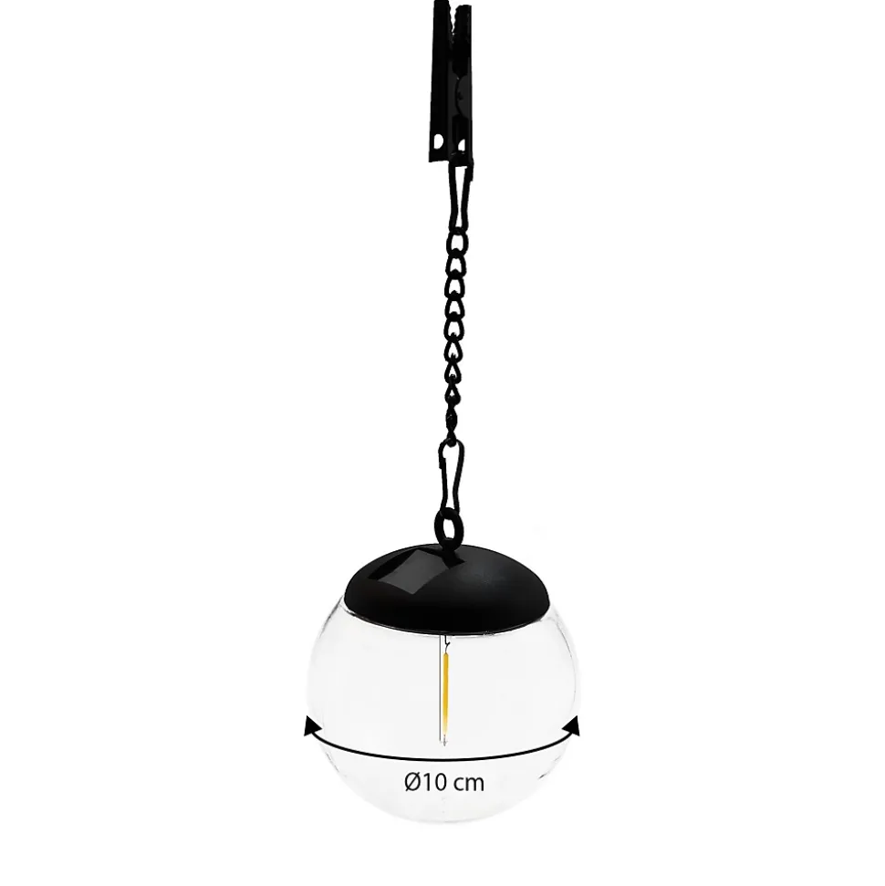 Haute luminosité avec un design unique : ces lampes solaires à économie d’énergie sont simples mais élégantes. La forme sphérique de 10 cm lui permet de se fondre dans différents environnements. Lumière chaude 3000K et ampoule effet ‘filament’ : pour donner une touche de chaleur et de raffinement à votre jardin, terrasse, gazebo, balcon…. Imperméable et durable : haute étanchéité signifie une excellente résistance aux intempéries et à l’eau. La spère est fabriquée en matériau ABS haute résistance, elle ignore la rouille pour une utilisation à long terme. Fonctionnement : la lampe se recharge pendant la journée, grâce aux rayons du soleil. Elle s’allume toute seule quand il fait noir. Effet ‘filament’ avec lumière chaude 3000K : elle fait de votre jardin, balcon ou terrasse un endroit spécial et chaleureux. Équipée d’un panneau solaire monocristallin et d’une batterie 150mAh NI-Mh; elle peut être fixée à l’aide de la pratique pince. Longueur de la chaîne : 10 cm. Autonomie : jusqu’à 6 heures en fonction de la charge reçue dans la journée.