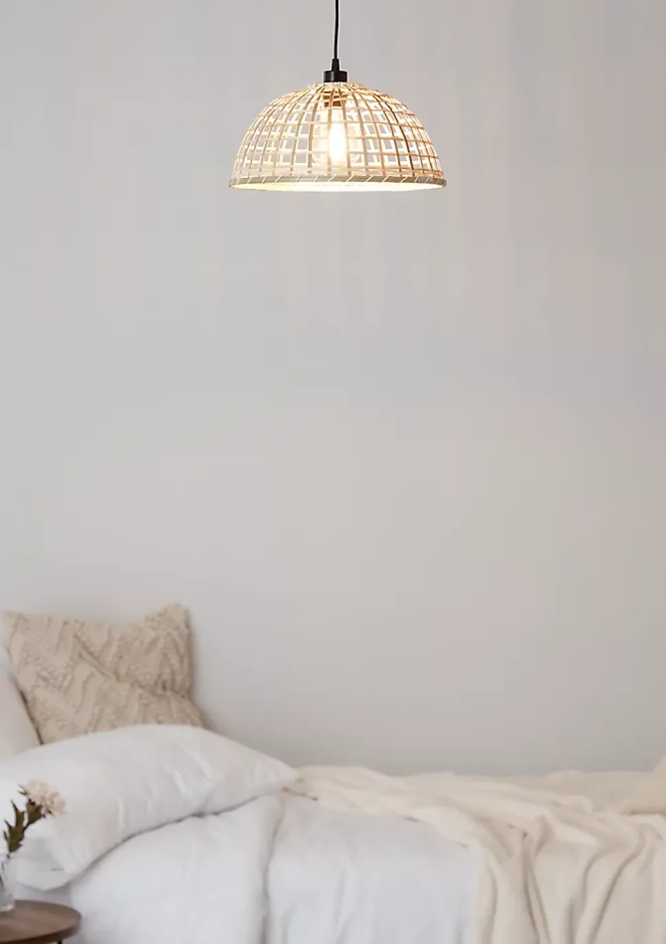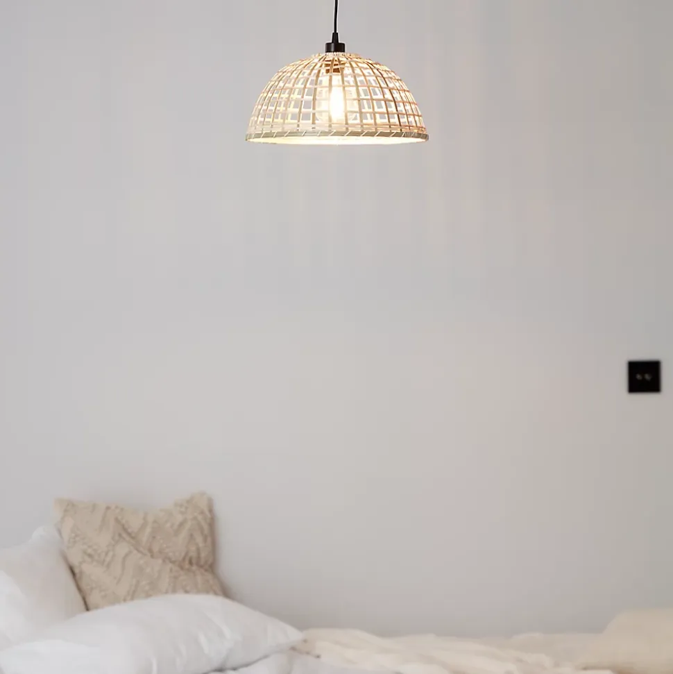 Nos suspensions ont été conçues dans un certain nombre de formes, de matières et de finitions pour vous permettre de trouver facilement celle qui vous convient. Cette suspension en fibre naturelle peut parfaitement servir de source de lumière principale