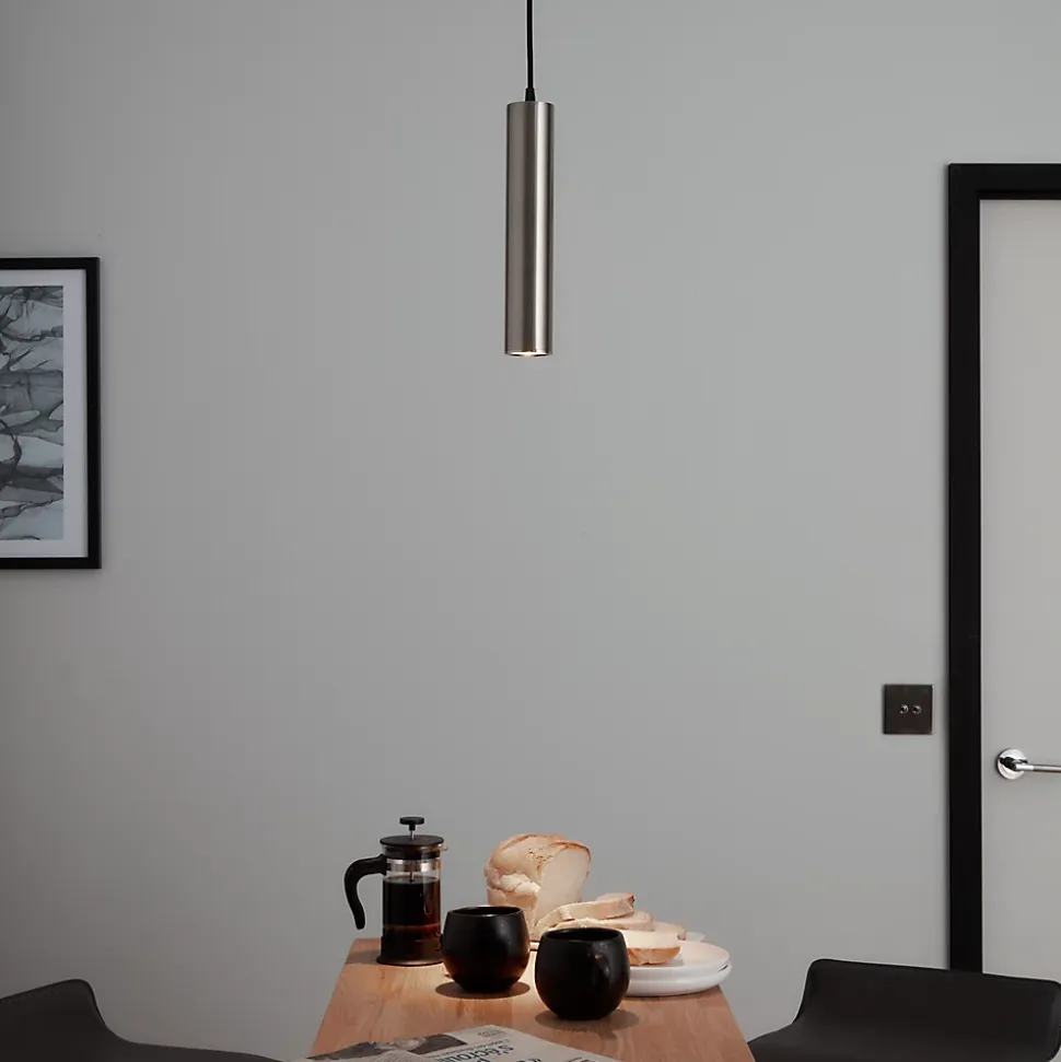- Parce que la suspension cylindrique permet une diffusion de la lumière vers le bas, elle est parfaite au-dessus d’un bar, d’une table à manger ou dans une petite pièce