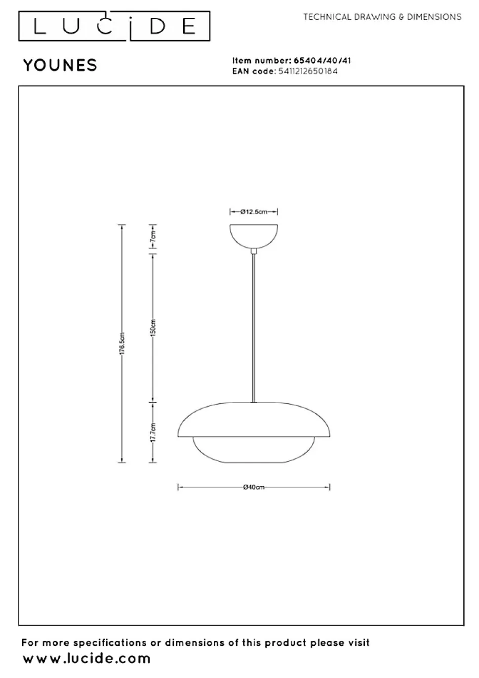Une touche rétro avec une touche moderne ? La suspension YOUNES apporte du caractère à votre intérieur grâce à son abat-jour semi-sphérique en métal et sa finition soignée. La lampe est réglable en hauteur avant l’installation, ce qui la rend parfaite au-dessus d’une table ronde ou dans un espace ouvert. Compatible avec une ampoule LED E27 (non incluse) et facile à utiliser via un interrupteur mural. Avec un diamètre de 40 cm et une hauteur maximale de 176,5 cm, cette suspension constitue un point focal remarquable. Apportez style et ambiance à votre espace avec YOUNES et commandez-la dès aujourd’hui.Caractéristiques uniques:• Utilisable avec une source lumineuse LED• Cette lampe est ajustable en hauteur• Facile à connecter à un variateur (non fourni)• Fabriqué en métalPrincipales caractéristiques du produit:• Consommation énergétique: 1x40W / 230V / A intensité variable (Ampoule non incluse)• Dimensions: Ø40 cm Haut.176,5 cm• 2 Ans garantie sur le luminaire / source de lumière appropriée est EAN: 5411212491152Pourquoi choisir l’éclairage Lucide?Lucide incarne un design innovant, un savoir-faire artisanal et une fiabilité exemplaire. En tant qu’entreprise familiale belge avec plus de trois décennies d’expertise, nous concevons des éclairages de haute qualité qui enrichissent et transforment chaque espace, tant intérieur qu’extérieur. Notre collection polyvalente comprend des luminaires durables et des sources lumineuses économes en énergie, soigneusement conçus par nos propres experts et fabriqués selon les normes CE les plus strictes. Grâce à notre large gamme, nous vous proposons toujours une solution d’éclairage adaptée, quel que soit le style ou l’espace. Ainsi, nous illuminons non seulement votre espace de vie mais aussi votre processus de choix dans la recherche d’un éclairage de qualité et abordable. Chez Lucide, nous combinons innovation et savoir-faire pour un éclairage qui…