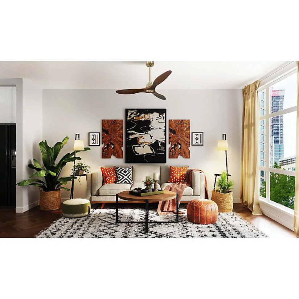 Tenerife RingTE5_P5Dw132_RingAbLe ventilateur de plafond Tenerife est un modèle polyvalent conçu pour offrir une ventilation efficace en été et une récupération de chaleur en hiver, grâce à sa fonction de destratification de l’air. Son design moderne et ses fonctionnalités avancées en font un choix idéal pour améliorer le confort thermique de votre intérieur tout au long de l’année.Fonctionnalités et AvantagesLe Tenerife ne se contente pas d’être un simple ventilateur, c’est un véritable régulateur thermique qui vous aide à réduire vos coûts de chauffage et de climatisation. Équipé d’un moteur à courant continu (DC) 100 % cuivre avec roulements à billes auto-lubrifiés, il garantit un fonctionnement silencieux et fiable.Le moteur DC offre un contrôle précis de la vitesse avec six niveaux disponibles, tout en assurant une faible consommation d’énergie. Ce ventilateur est classé Hyper Silence, ce qui signifie qu’il est pratiquement inaudible jusqu’à la vitesse 3.Installation et PersonnalisationLe Tenerife est livré avec deux tiges de plafond de 12,5 cm et 25 cm, avec des options de prolongateurs de 60, 120 et 180 cm disponibles. Les jeux de pales sont composés de trois pales en ABS léger et résistant ou en bois, et peuvent être configurés avec deux ou trois pales selon vos préférences.Performance et EfficacitéLe modèle P5 est conçu pour des pièces de 25 à 40 m² en mode été et 60 à 90 m² en mode hiver. Avec un diamètre de 132 cm, il offre une puissance de 3450-12480 m³/h,