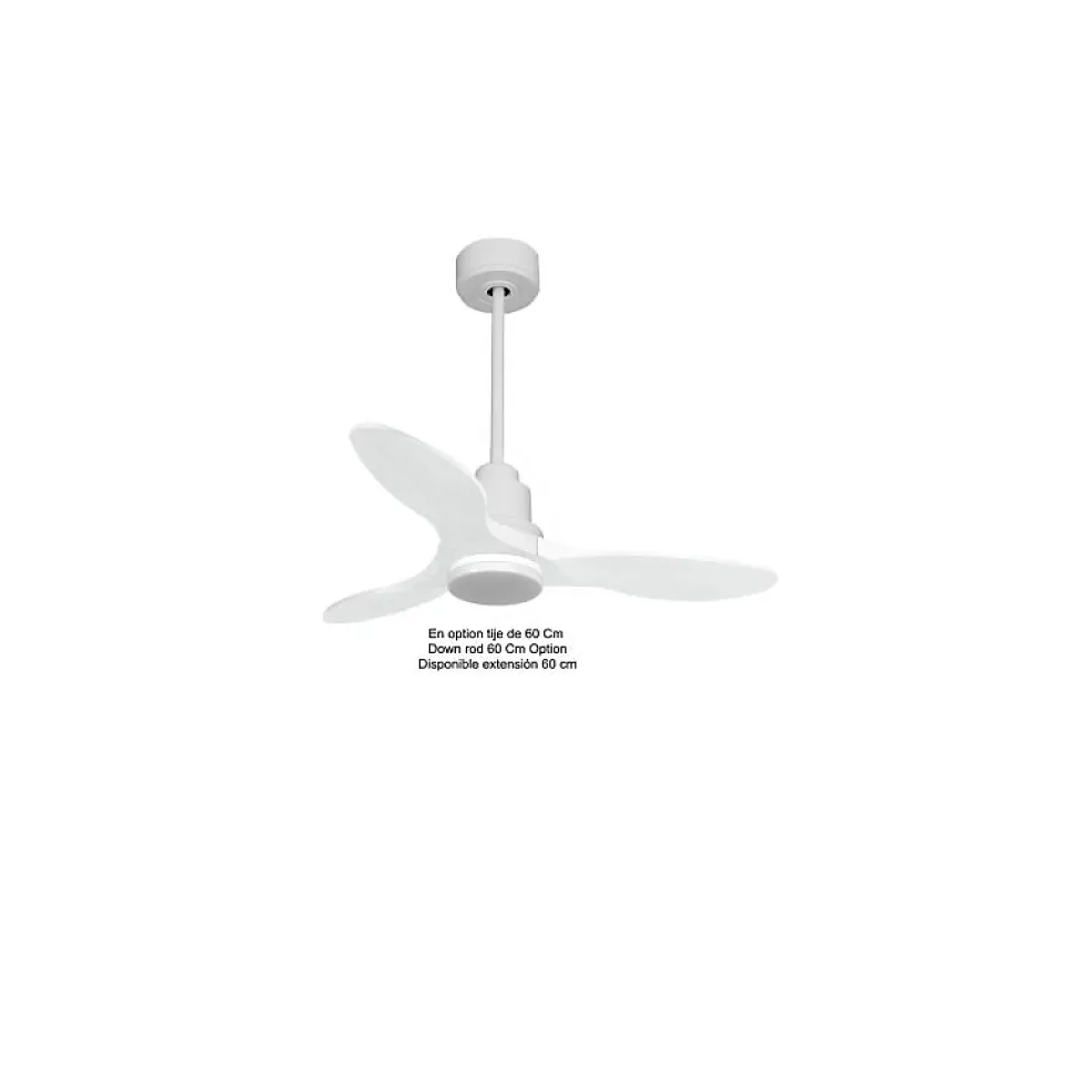 TenerifeTE4_P5Wi106_L1SlimLe ventilateur de plafond Tenerife est un modèle modulable et performant, idéal pour la ventilation estivale et la récupération de chaleur en hiver. Ce dispositif polyvalent se distingue par son design moderne et ses fonctionnalités avancées, offrant une solution efficace pour réguler la température de votre intérieur tout en réalisant des économies d’énergie.Technologie et PerformanceÉquipé d’un moteur à courant continu (DC) 100 % en cuivre avec roulements à billes auto-lubrifiés, le ventilateur Tenerife assure un fonctionnement silencieux et fiable. Le moteur DC permet un contrôle précis grâce à ses 6 vitesses, tout en garantissant une faible consommation d’énergie. Les ventilateurs de plafond Hyper Silence sont pratiquement inaudibles jusqu’à la vitesse 3, et seules les vitesses supérieures peuvent occasionner un léger bruit d’air.Installation et OptionsLe modèle Tenerife est livré avec deux tiges de plafond de 12,5 cm et 25 cm, avec des options supplémentaires de tiges de 60, 120 et 180 cm. Les pales sont disponibles en ABS léger et résistant ou en bois, et peuvent être configurées avec 2 ou 3 pales selon vos préférences. Le jeu de pales P5 est recommandé pour des pièces de 10 à 20 m² en été et de 40 à 60 m² en hiver.Caractéristiques Techniques Surface de portée : 10-20 m² en été, 30-60 m² en hiver Système d’éclairage : Kit lumière L1 Slim dimmable (LED 18 Watts, 1900 Lms, 2700 K, 45