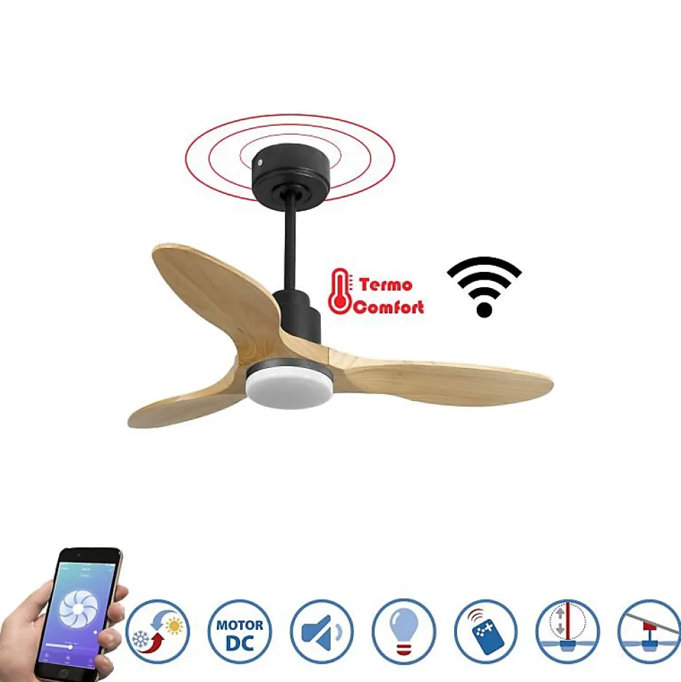 TenerifeTE1_P5Sw106_L1SlimLe ventilateur de plafond Tenerife est un modèle modulable et multifonctionnel, conçu pour offrir une ventilation efficace en été et une récupération de chaleur en hiver. Son design moderne s’allie à une grande polyvalence, en faisant un régulateur thermique idéal pour réduire vos coûts de chauffage et de climatisation.Technologie et PerformanceÉquipé d’un moteur à courant continu (DC) 100 % cuivre avec roulements à billes auto-lubrifiés, le ventilateur Tenerife garantit un fonctionnement silencieux et sans souci. Ce moteur DC offre un contrôle précis de la vitesse avec six niveaux, tout en étant économe en énergie et Hyper Silence. Jusqu’à la vitesse 3, le ventilateur est pratiquement inaudible, et au-delà, seul le mouvement de l’air peut être perçu.Installation et OptionsLe modèle Tenerife est livré avec deux tiges de plafond de 12,5 cm et 25 cm, avec des options supplémentaires de 60, 120 et 180 cm. Les pales, disponibles en ABS léger et résistant ou en bois, peuvent être montées en configurations de 2 ou 3 pales selon vos préférences.Capacité et EfficacitéLe jeu de pales P5 est idéal pour des pièces de 10 à 20 m² en été et de 40 à 60 m² en hiver. Avec un diamètre de 106 cm, il offre une puissance de 2450-7240 m³/h, une vitesse de rotation de 85-245 RPM, un niveau sonore de 28-48 dB et une consommation de 3-15 Watts.Fonctionnalités AvancéesChaque ventilateur Tenerife est fourni avec une télécommande permettant de contrôler les vitesses, l’