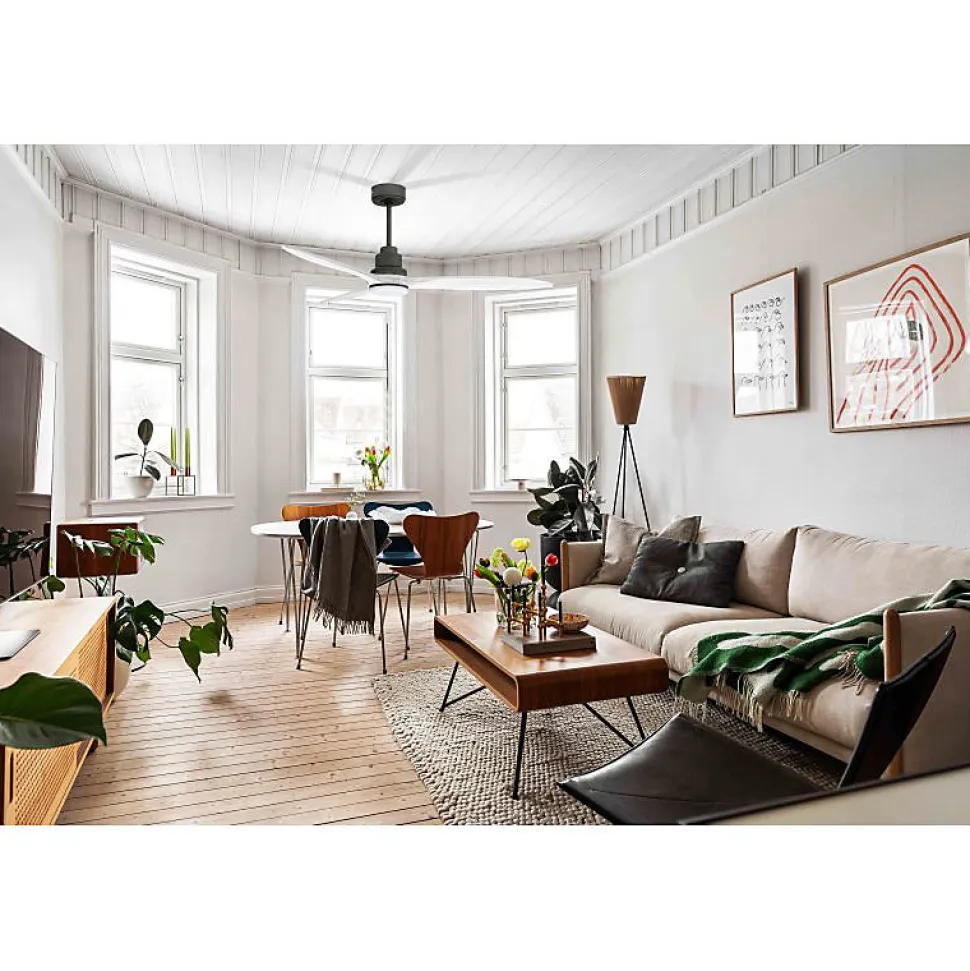 TenerifeTE1_P8Wi132_L1sLe ventilateur de plafond Tenerife est un modèle modulable et un destratificateur d’air, idéal pour une utilisation toute l’année. En été, il assure une ventilation efficace, tandis qu’en hiver, il récupère la chaleur accumulée au plafond, optimisant ainsi votre consommation énergétique. Ce produit polyvalent allie design moderne et fonctionnalité avancée.Plus qu’un simple ventilateur, Tenerife est un régulateur thermique qui vous aide à réduire vos dépenses de chauffage et de climatisation. Équipé d’un moteur à courant continu (DC) 100 % cuivre avec roulements à billes auto-lubrifiés, il garantit un fonctionnement silencieux et fiable.Le moteur DC offre un contrôle précis de la vitesse avec ses 6 niveaux, tout en consommant peu d’énergie. Ce modèle est classé Hyper Silence, signifiant qu’il est pratiquement inaudible jusqu’à la vitesse 3. Seul le mouvement de l’air peut être perçu à des vitesses plus élevées.Le Tenerife est livré avec deux tiges de plafond de 12,5 cm et 25 cm, avec des options supplémentaires de 60, 120 et 180 cm. Les pales, disponibles en ABS ou en bois, sont légères et résistantes. Vous pouvez choisir d’installer 2 ou 3 pales selon vos préférences.La configuration actuelle inclut des pales P8, adaptées pour des pièces de 25 à 40 m² en été et de 60 à 90 m² en hiver. Avec un diamètre de 132