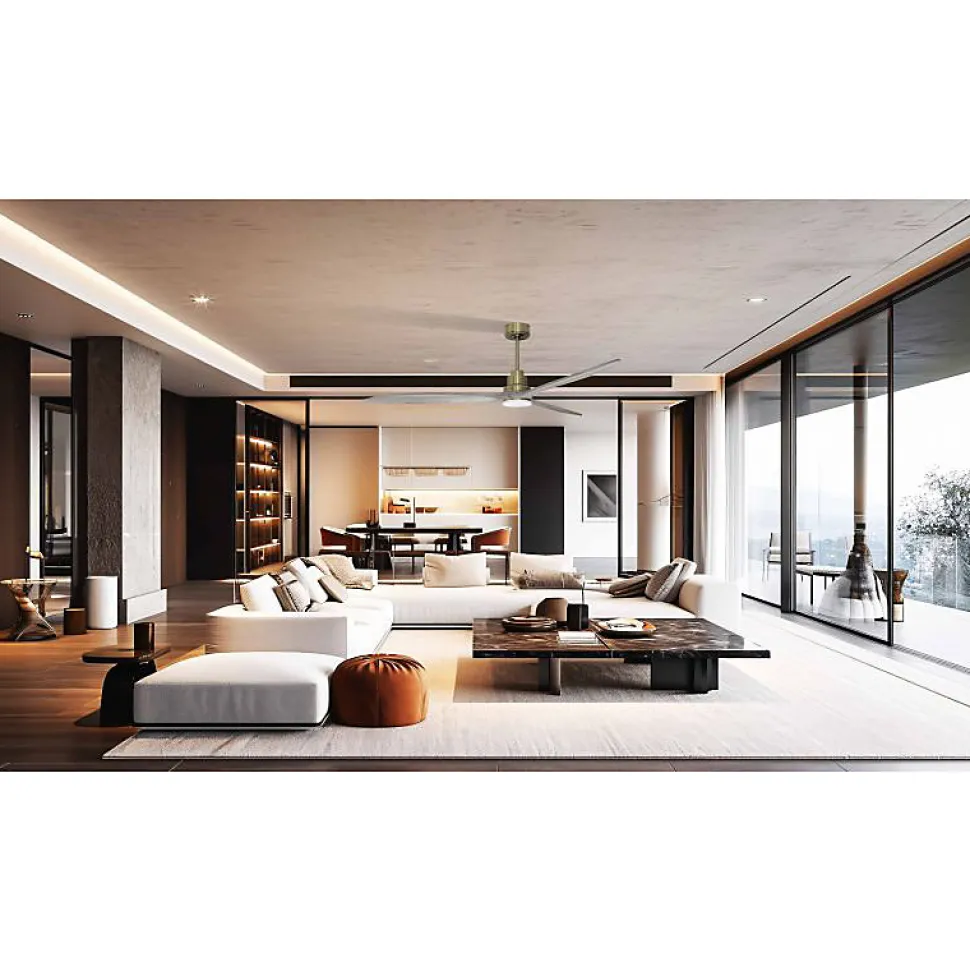 TenerifeTE5_P8Gr166_L1sLe ventilateur de plafond Tenerife est un modèle modulable qui fonctionne également comme un destratificateur d’air. Il est conçu pour offrir une ventilation efficace en été et une récupération de chaleur en hiver, ce qui en fait un produit polyvalent et moderne. Ce ventilateur est un véritable régulateur thermique, permettant de réaliser des économies sur les coûts de chauffage et de climatisation.Technologie de pointeÉquipé d’un moteur à courant continu (DC) entièrement en cuivre avec des roulements à billes auto-lubrifiés, le Tenerife assure un fonctionnement silencieux et fiable. Ce moteur DC offre un contrôle précis de la vitesse avec ses 6 vitesses disponibles, tout en garantissant une faible consommation d’énergie. Les ventilateurs de plafond Hyper Silence sont réputés pour leur fonctionnement ultra-silencieux, étant pratiquement inaudibles jusqu’à la vitesse 3.Installation flexibleLe modèle Tenerife est livré avec deux tiges de plafond de 12,5 cm et 25 cm, avec des options supplémentaires de tiges de 60, 120 et 180 cm. Les pales, disponibles en ABS léger et résistant ou en bois, se montent par jeu de 3, et vous pouvez choisir d’installer 2 ou 3 pales selon vos préférences.Performance et efficacitéLe jeu de pales P8 est idéal pour des pièces de 30 à 60 m² en mode été et de 90 à 120 m² en mode hiver. Avec un diamètre de 166 cm, le