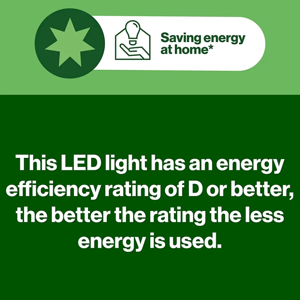 - Cette ampoule LED a une classe énergétique D ou supérieure. Plus la classe énergétique est élevée, plus la consommation d’énergie est faible. Plus d’informations sur castorama.fr/green-star