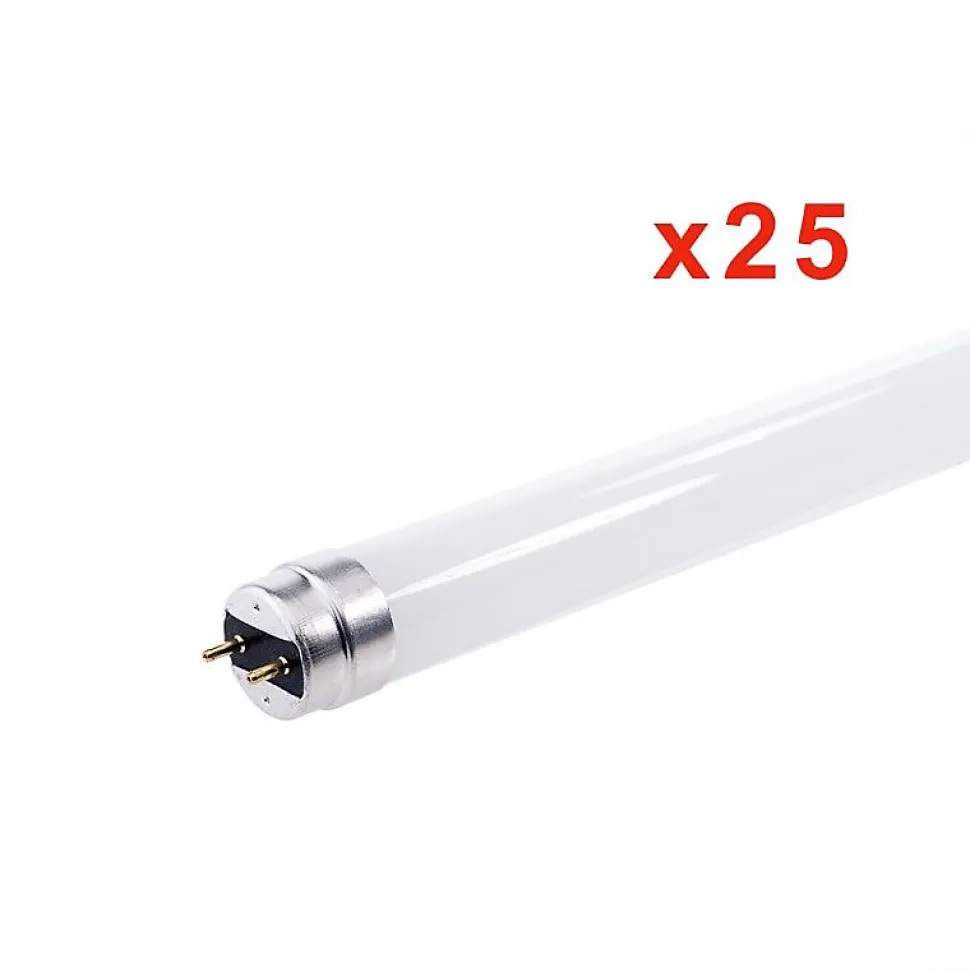 - [Éclairez tout en économisant] Contrairement aux tubes T8 classiques, ce tube LED ne consomme que 9 kWh/1000h. Il vous permet ainsi de mieux éclairer vos locaux tout en consommant peu d’énergie. Petit et résistant, il dispose d’une durée de vie d’environ 25 000h. Profitez du pack de 25 Tubes T8 Alimentés 1 côté pour faire de grandes économies d’énergie.