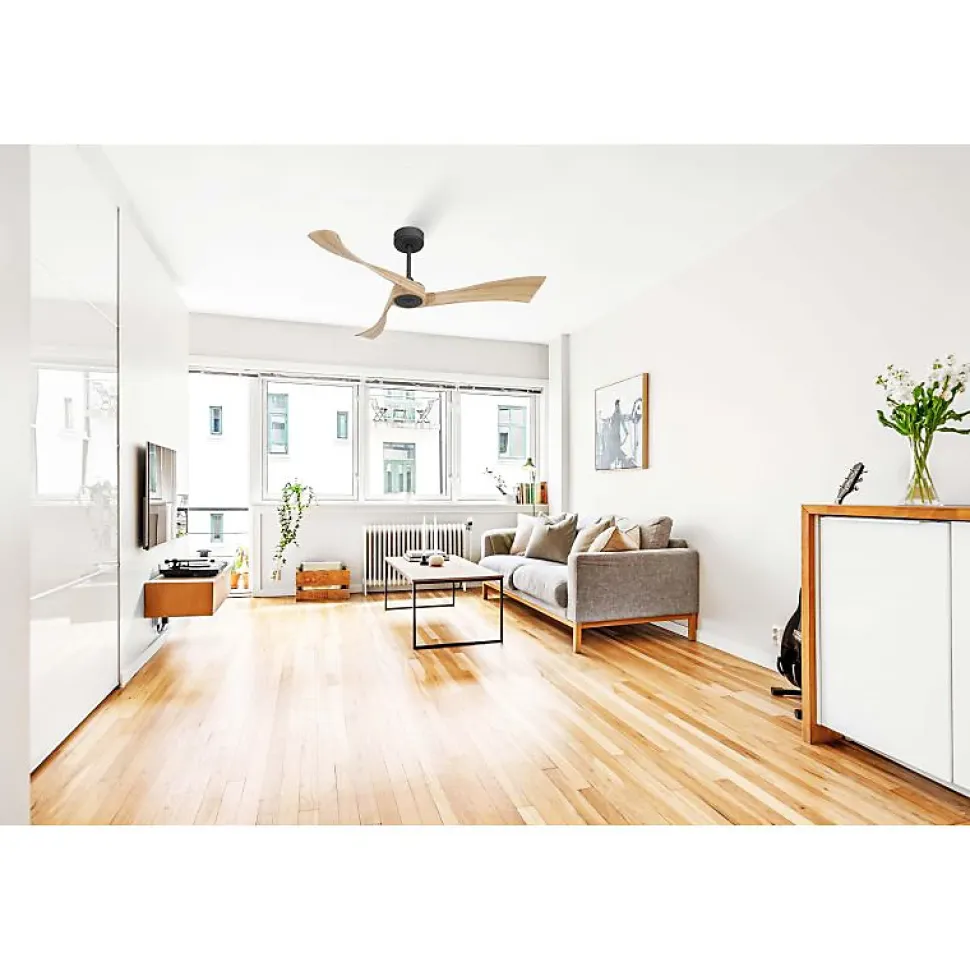 Twist Black de KlassfanDécouvrez le Twist de Klassfan, un ventilateur de plafond au design moderne et aux performances de pales exceptionnelles. Ses pales fortement incurvées et son angle de « pitch » prononcé lui permettent d’offrir une efficacité remarquable, même à basse vitesse.Conçu pour des vitesses de rotation lentes, le Twist assure une ventilation douce, idéale pour les chambres et les bureaux. La première vitesse atteint 60 tours par minute et la deuxième 80 tours par minute, avec un niveau sonore inférieur à 28 dB(A), le plaçant parmi les ventilateurs les plus silencieux disponibles. Pour une ventilation plus intense, les vitesses peuvent monter jusqu’à 170 tours par minute.Le Twist intègre le système FullFlow de Klassfan, qui ajuste la puissance du moteur en fonction des besoins et des pales. Avec un réglage FullFlow au Niveau 3, la puissance peut être augmentée de 15% à trois reprises, optimisant ainsi les performances selon vos exigences et la configuration de votre pièce.Équipé du moteur Ouray, le Twist offre une puissance variable de 14 à 50 watts, avec une consommation énergétique allant de 4.2 watts à 26 watts à pleine vitesse en programme 3 du FullFlow. Cela vous permet de personnaliser les performances selon vos préférences.Un véritable régulateur thermique :Le Twist de Klassfan est doté de fonctionnalités avancées : thermostat intégré, connectivité Wifi hyper programmable avec scénarios et appels d’oracles, fonction de super déstratificateur et télécommande RF. Des options supplémentaires incluent le Thermafeel, un thermostat déporté, et un boîtier de command