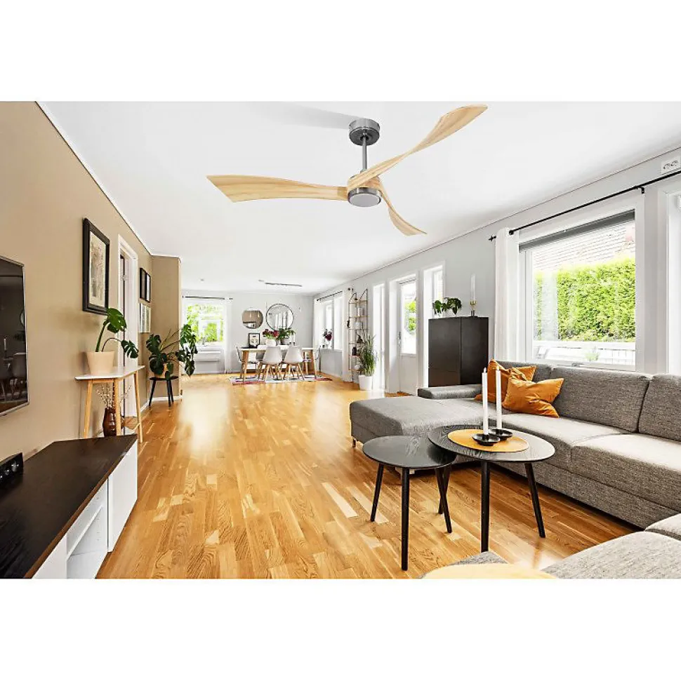 Twist de KlassfanDécouvrez le Twist de Klassfan, un ventilateur de plafond au design contemporain et aux performances de ventilation remarquables. Ses pales incurvées avec un angle de « pitch » prononcé garantissent une efficacité optimale même à faible vitesse.Performance et SilenceConçu pour offrir une ventilation douce, le Twist est idéal pour les grandes pièces et les bureaux. Il fonctionne à des vitesses de rotation lentes, avec une première vitesse à 50 tours par minute et une deuxième à 60 tours par minute, générant un bruit inférieur à 26 dB(A). Pour une ventilation plus intense, les vitesses peuvent atteindre jusqu’à 140 tours par minute.Technologie FullFlowLe Twist est équipé du système FullFlow de Klassfan, qui ajuste la puissance du moteur en fonction des besoins. En mode Niveau 5, il augmente la puissance de 15%, garantissant des performances optimales. La consommation d’énergie varie de 6.5 à 50 watts, selon le réglage choisi.Régulation Thermique AvancéeLe Twist intègre des fonctionnalités avancées telles que le thermostat, le Wifi programmable, et la télécommande RF. En option, ajoutez le Thermafeel, un thermostat déporté, et un boîtier de commande mural. Ce ventilateur assure une régulation thermique précise et automatisée.Système d’Éclairage ModerneLe point lumineux L1 du Twist, équipé d’une plaque LED dimmable, offre trois tons de lumière : blanc chaud, pur et froid. La fonction mémoire conserve vos réglages pour un confort d’utilisation optimal.Caractéristiques Surface de portée : mode déstratificateur 90 à 110 m², mode ventilation 35 – 50 m² Système d’éclairage : L1 avec plaque LED SMD 20 Watts, 1900 Lms, 3 tons, 2700, 4000, 6000 Kv, CRI 80, dimmabl