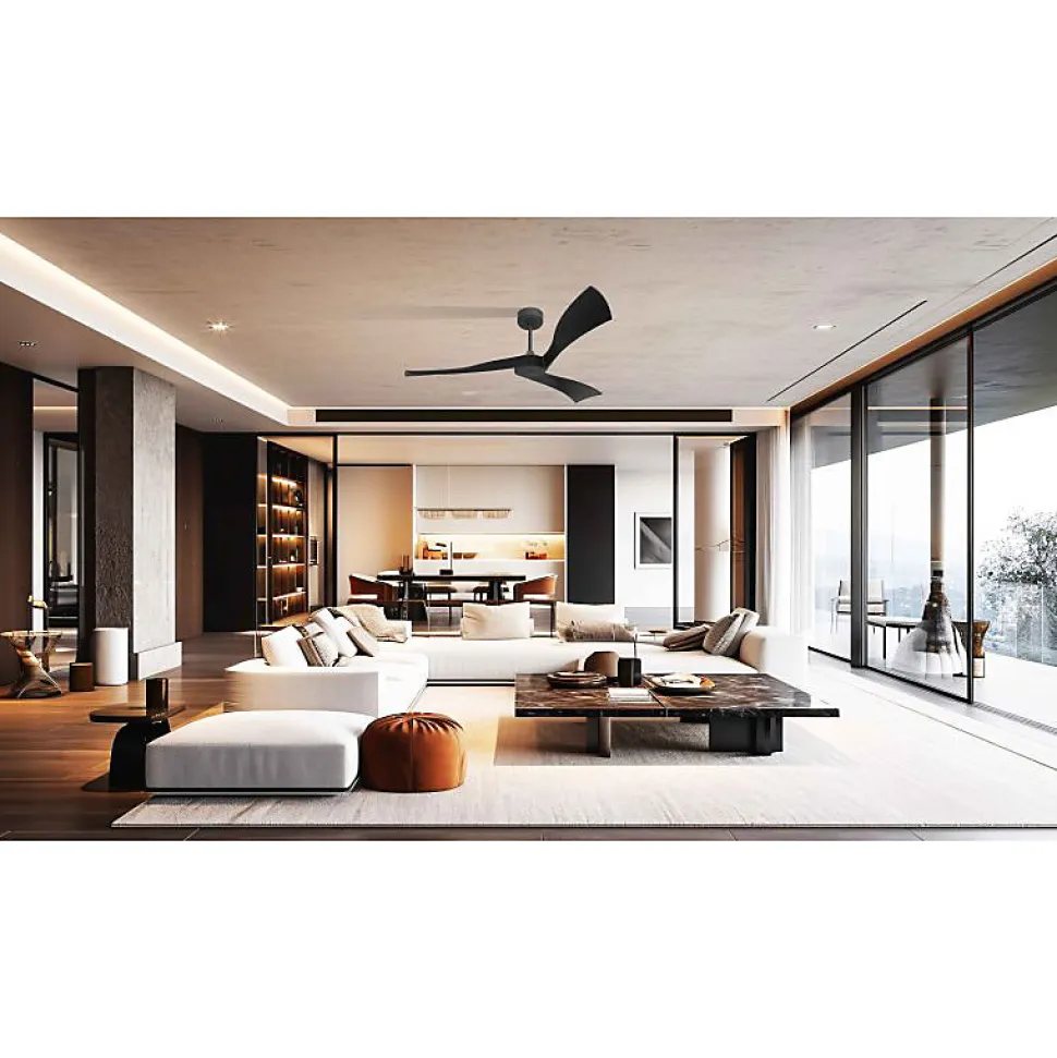 Twist de KlassfanDécouvrez le Twist de Klassfan, un ventilateur de plafond au design contemporain et aux performances de pointe. Ses pales incurvées avec un angle de « pitch » prononcé garantissent une efficacité optimale, même à faible vitesse.Performance et SilenceConçu pour des rotations lentes, le Twist ventile sans créer de flux d’air excessif, idéal pour les grands espaces et les bureaux. La première vitesse atteint 50 tours par minute, et la deuxième 60 tours par minute, avec un niveau sonore inférieur à 26 dB(A), faisant de lui l’un des ventilateurs les plus silencieux. Pour une ventilation plus intense, il peut aller jusqu’à 140 tours par minute.Technologie FullFlowLe Twist intègre le système FullFlow de Klassfan, ajustant la puissance du moteur selon les besoins. Avec un réglage au Niveau 5, il offre une performance accrue de 15%. Le moteur Ouray, qui l’anime, varie de 14 à 50 watts, avec une consommation énergétique de 6.5 à 50 watts en mode maximal.Fonctionnalités AvancéesÉquipé de fonctionnalités modernes telles qu’un thermostat, un Wifi programmable, et une télécommande RF, le Twist est un régulateur thermique efficace. En option, ajoutez le Thermafeel, un thermostat déporté, et un boîtier de commande mural pour une gestion encore plus précise.Caractéristiques Surface de portée : Mode déstratificateur 90 à 110 m², mode ventilation 35 – 50 m² Système d’éclairage : Optionnel L1 avec plaque LED SMD 20 Watts, 1900 Lms, 3 tons, dimmable Système réversible : Oui, mode été/hiver via télécommande Télécommande : Klassfan Full Flow ave